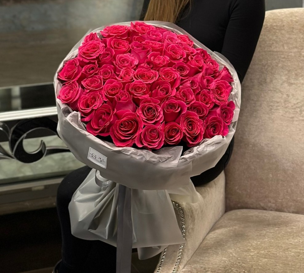Букет из 51 розы сорта "Pink Floyd" — это стильное выражение элегантности и романтики. Эти розы поражают своим глубоким ярким цветом и насыщенным чувственным ароматом.