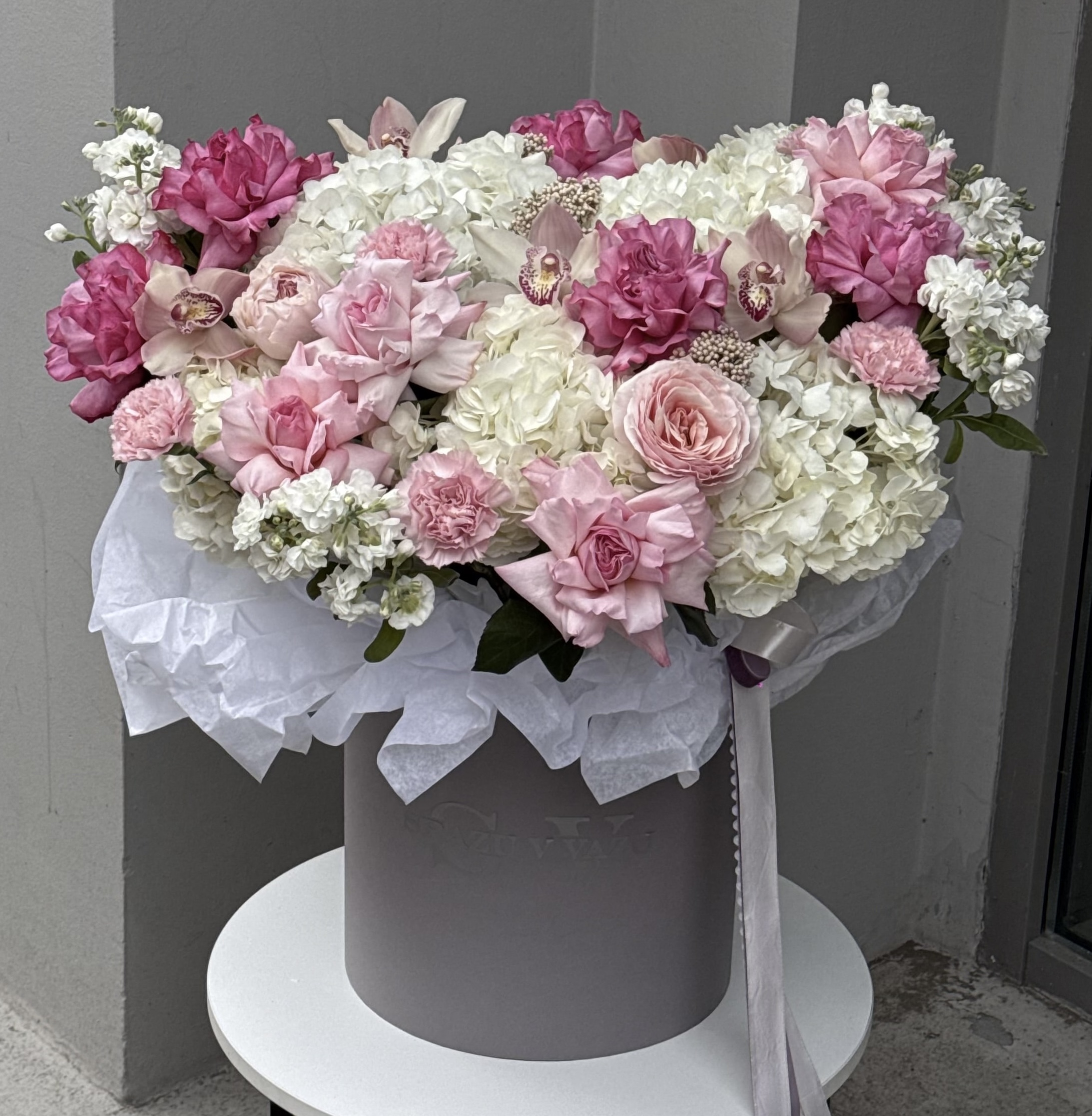 Заказать Авторская композиция с орхидеей, гортензией и розами с доставкой по Самаре