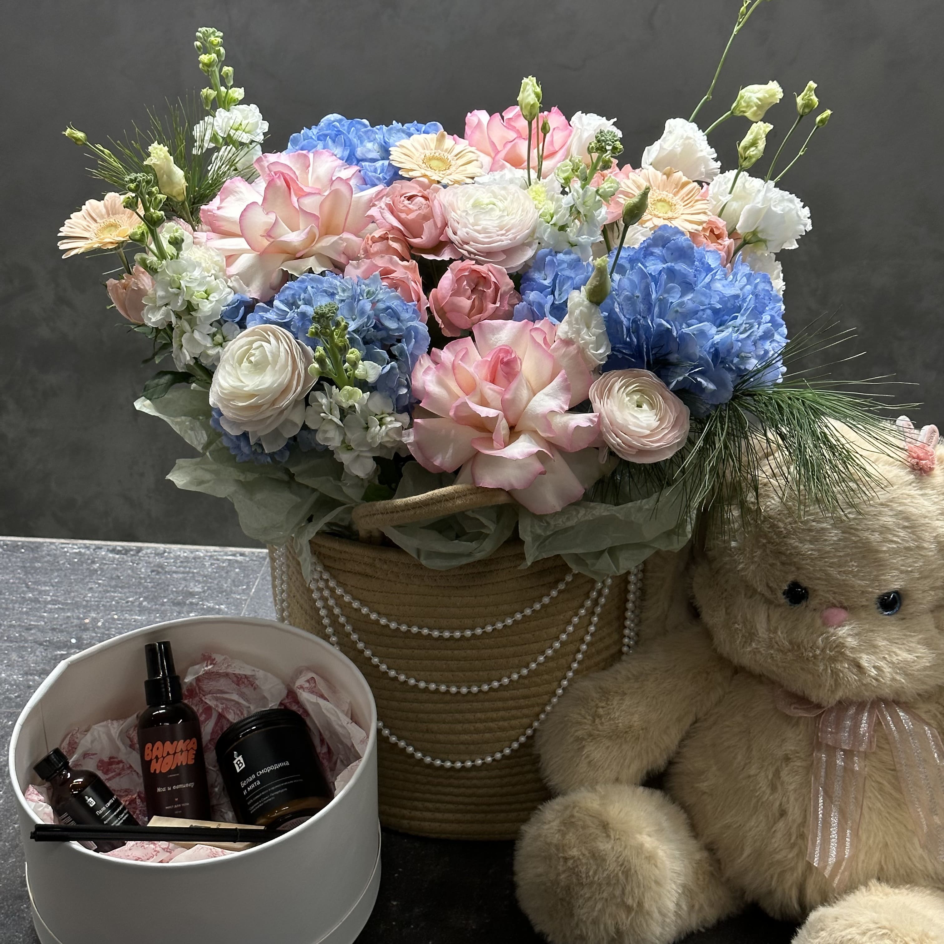 Заказать Авторская композиция с ранункулюсом и хвоей с доставкой по Самаре