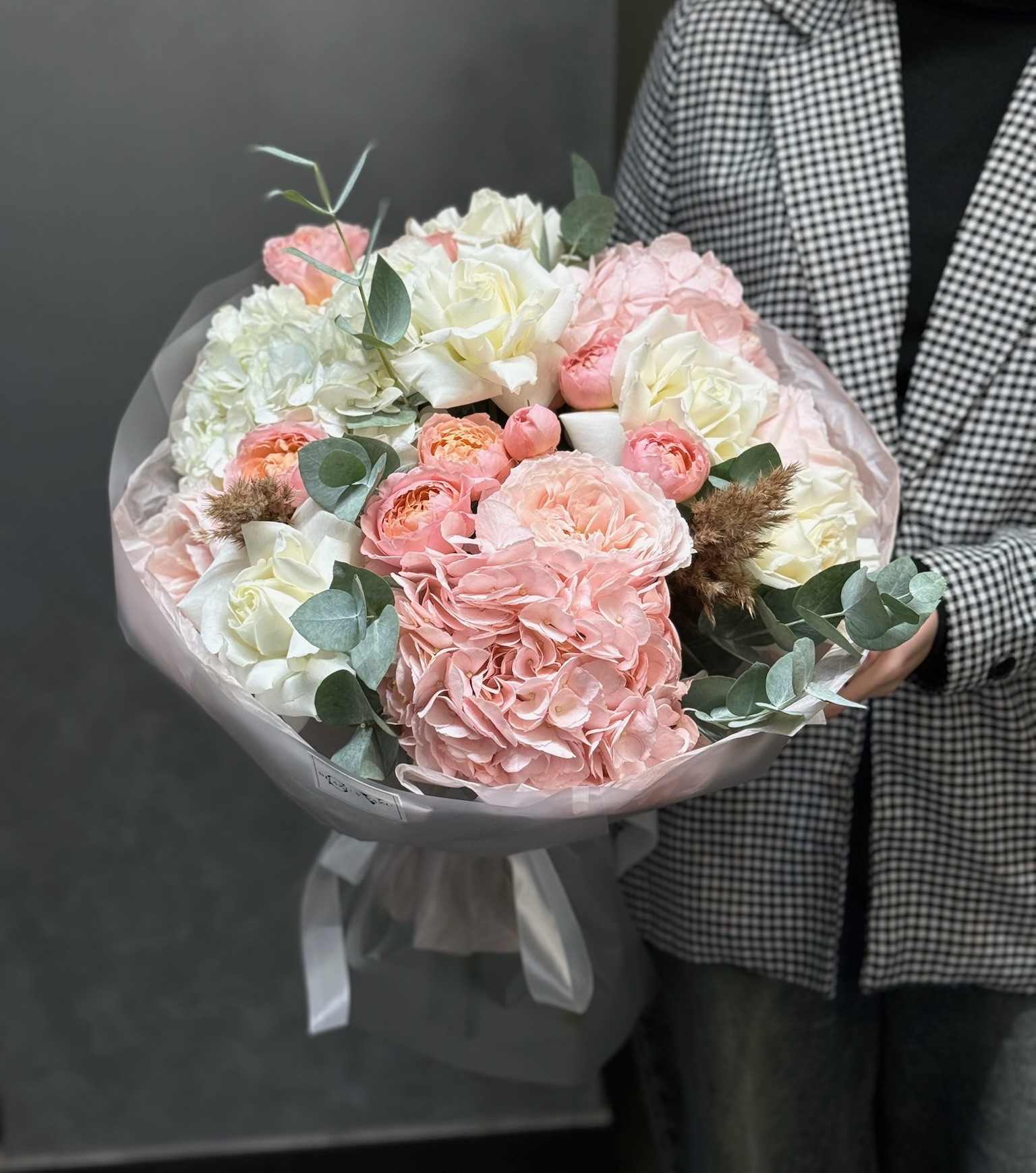 Заказать Авторский букет с джульеттой, гортензией и эвкалиптом с доставкой по Самаре