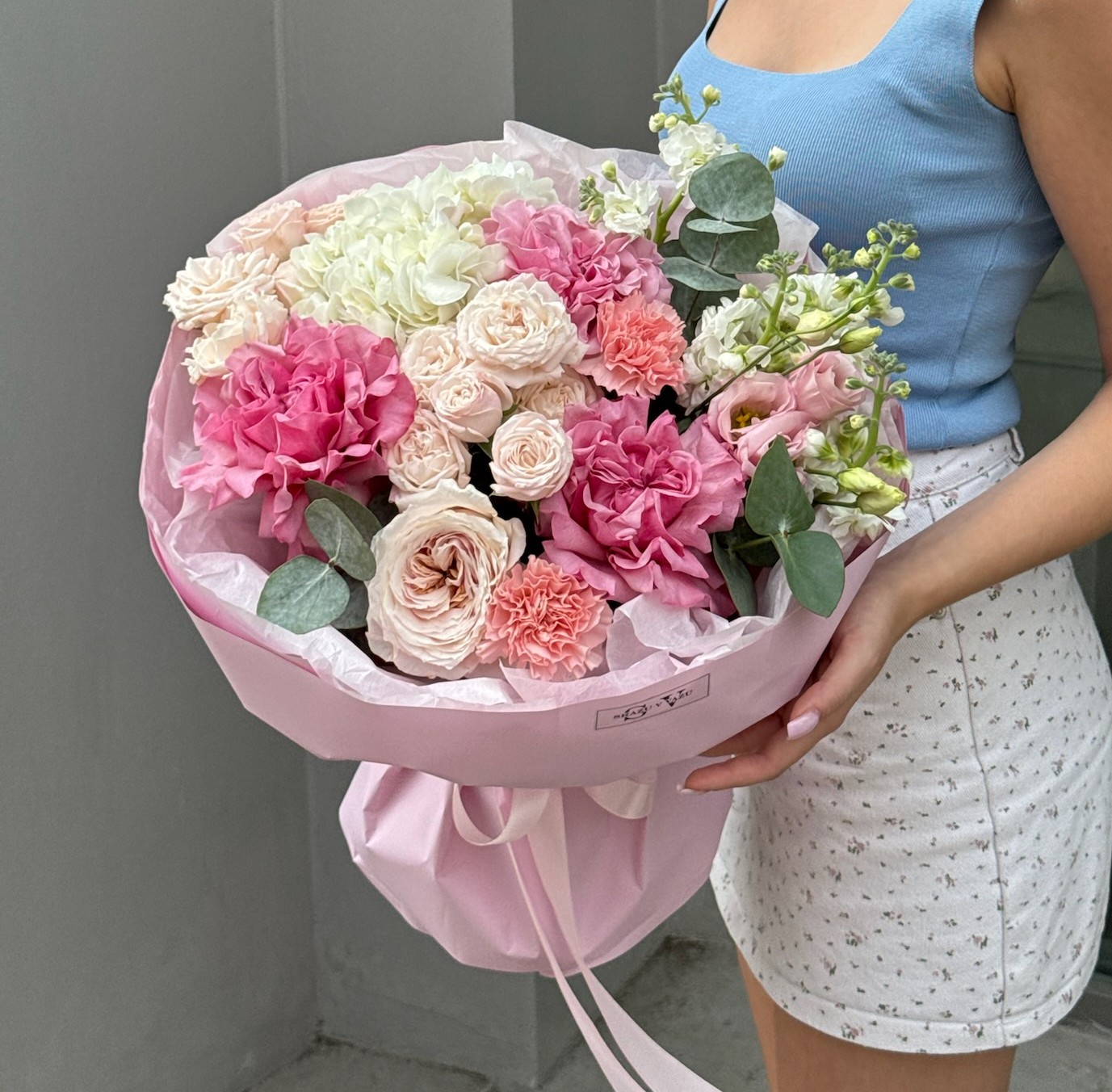 Заказать Авторский букет с гортензией,розами и эустомой с доставкой по Самаре
