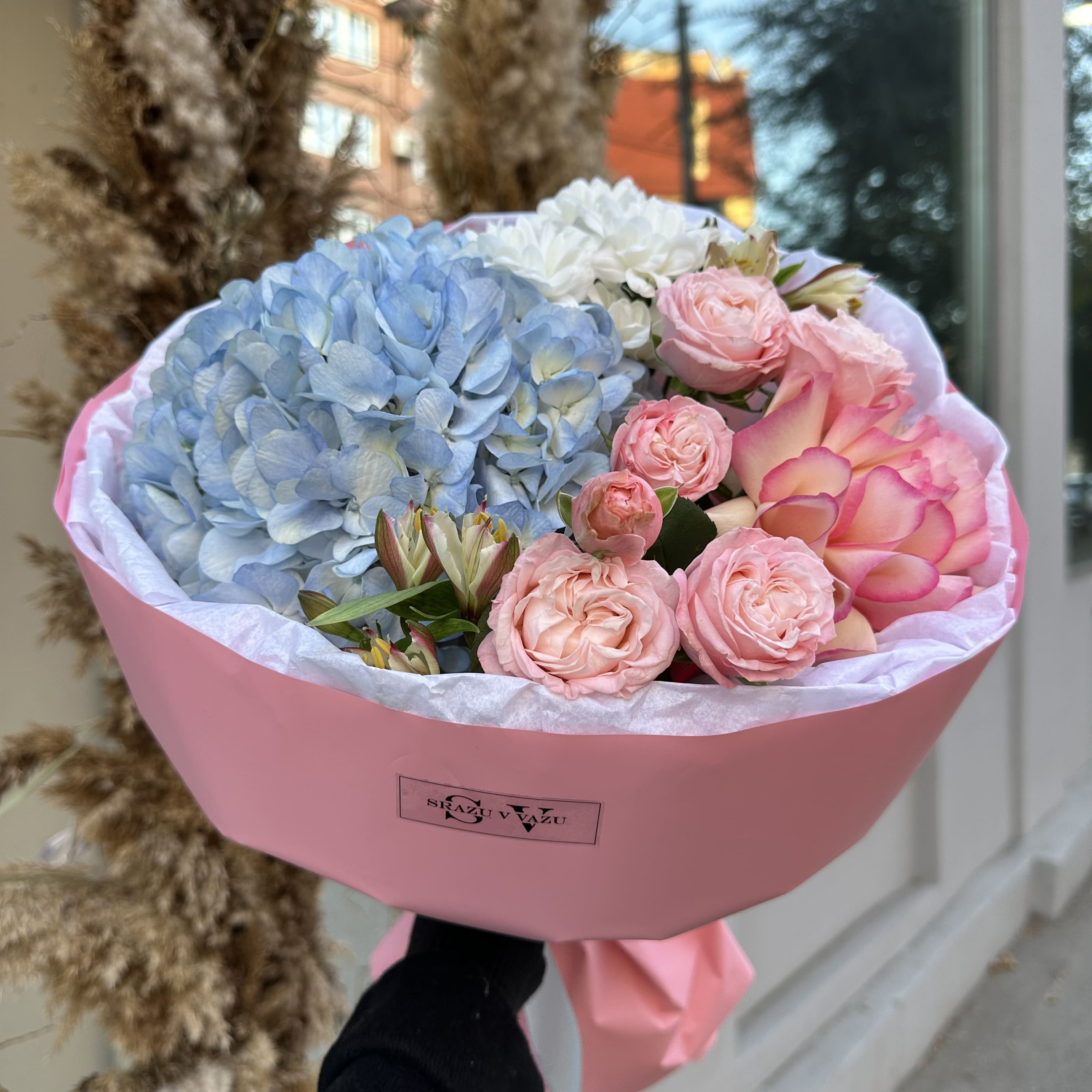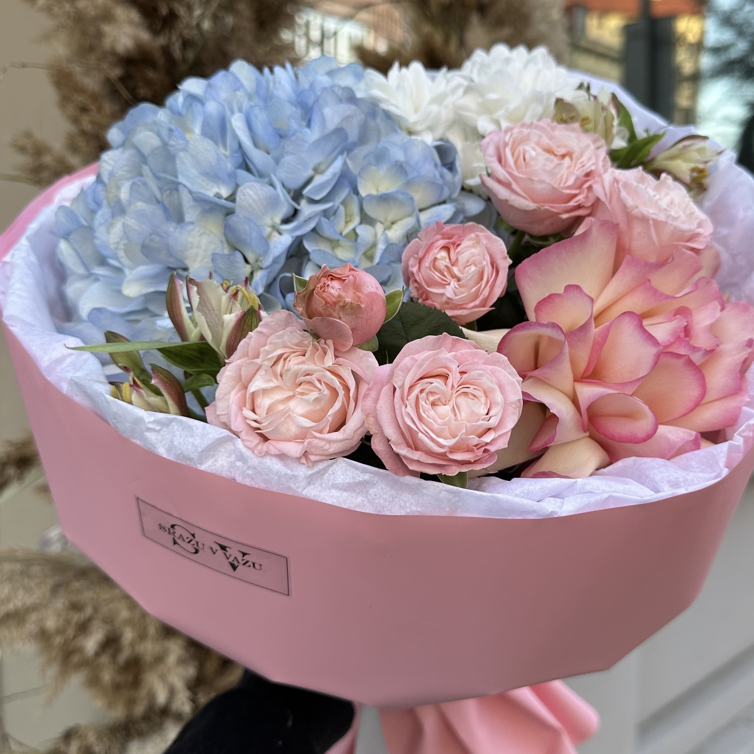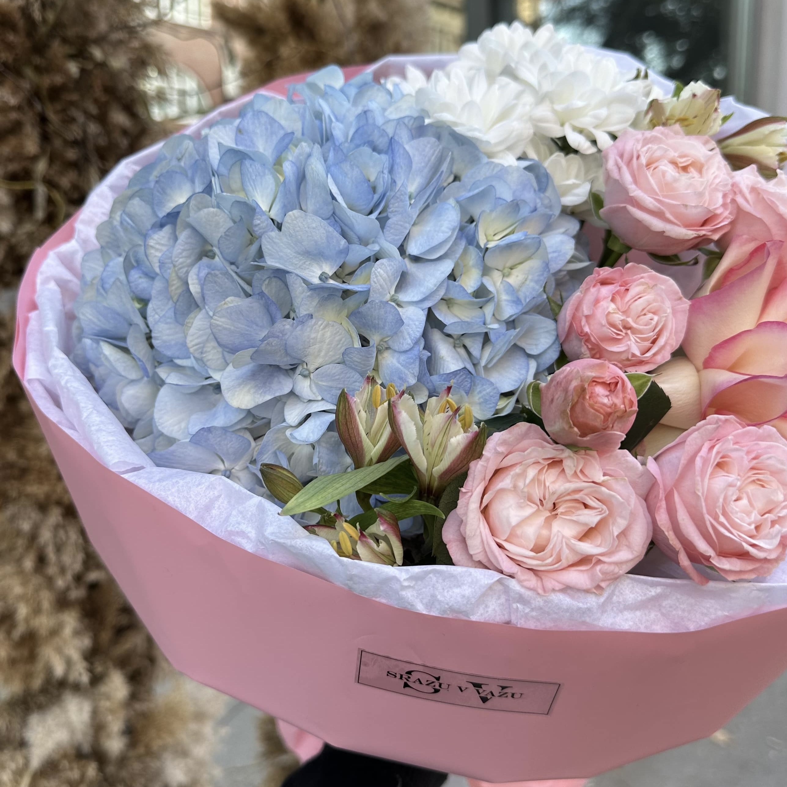 Заказать Авторский букет с гортензией, альстромерией и розой с доставкой по Самаре