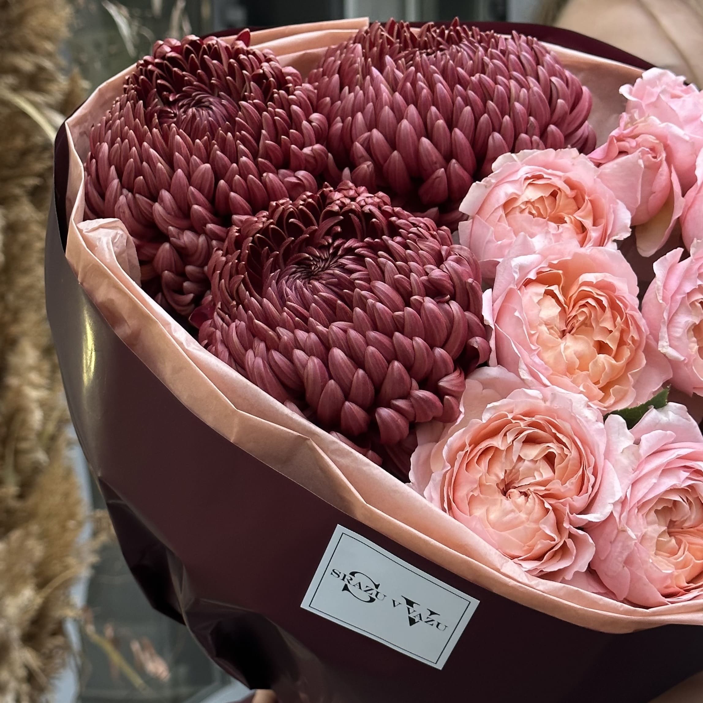 Игривое сочетание насыщенно персиковой кустовой розы Джульетта и сезонной хризантемы Бигуди в этом букете создает романтичное настроение, ощущение праздника и восторга. Такой букет никого не оставит равнодушным!