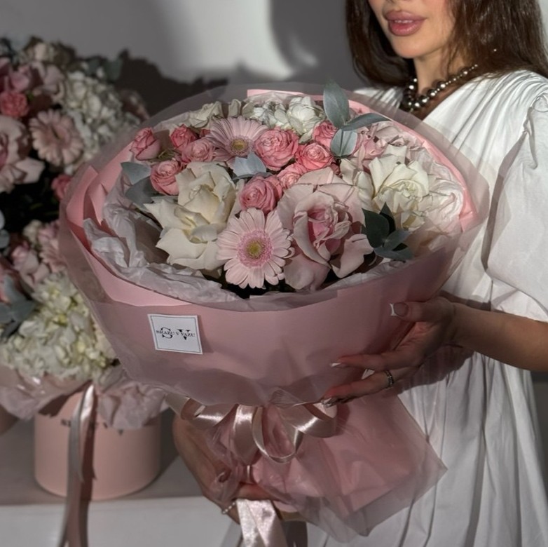 Заказать Авторский букет с французскими розами и гермини с доставкой по Самаре
