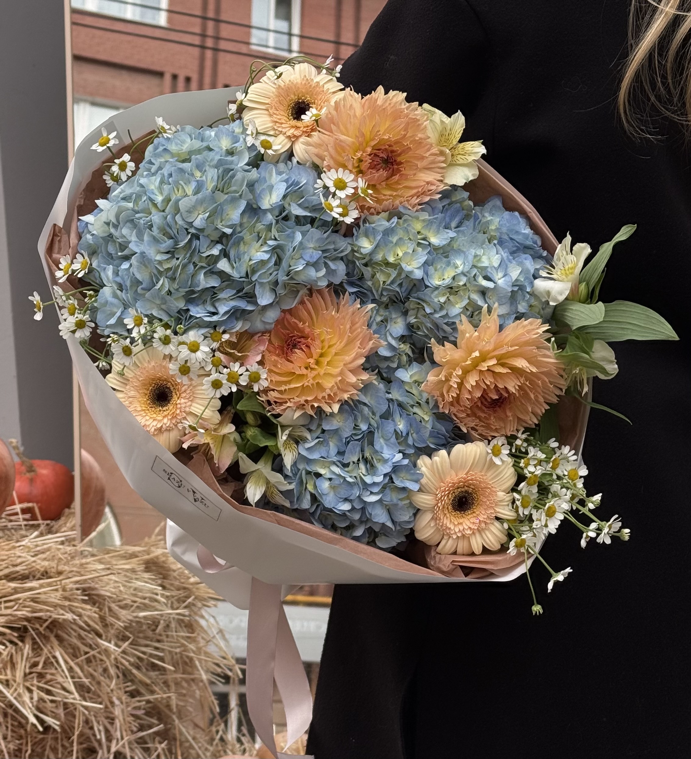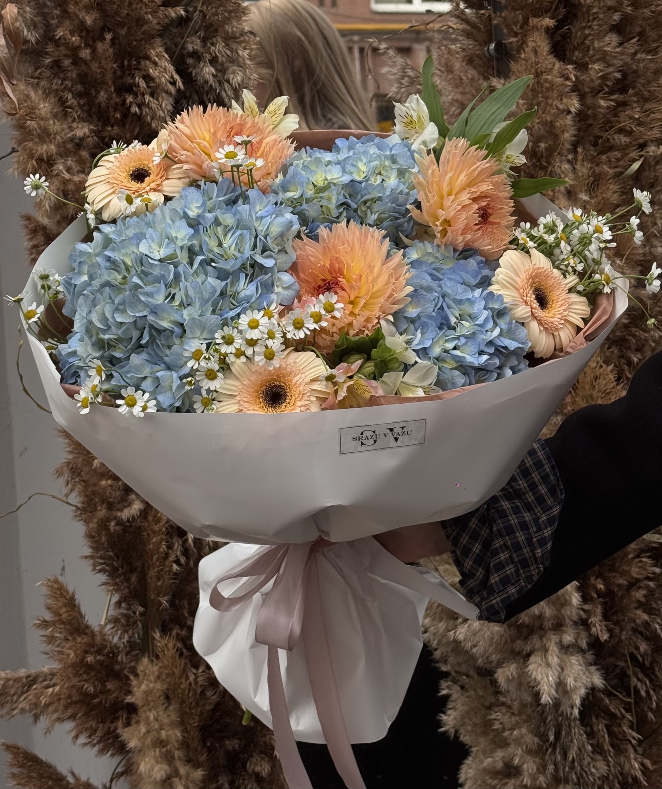 Заказать Авторский букет с сезонными георгинами и ромашками с доставкой по Самаре