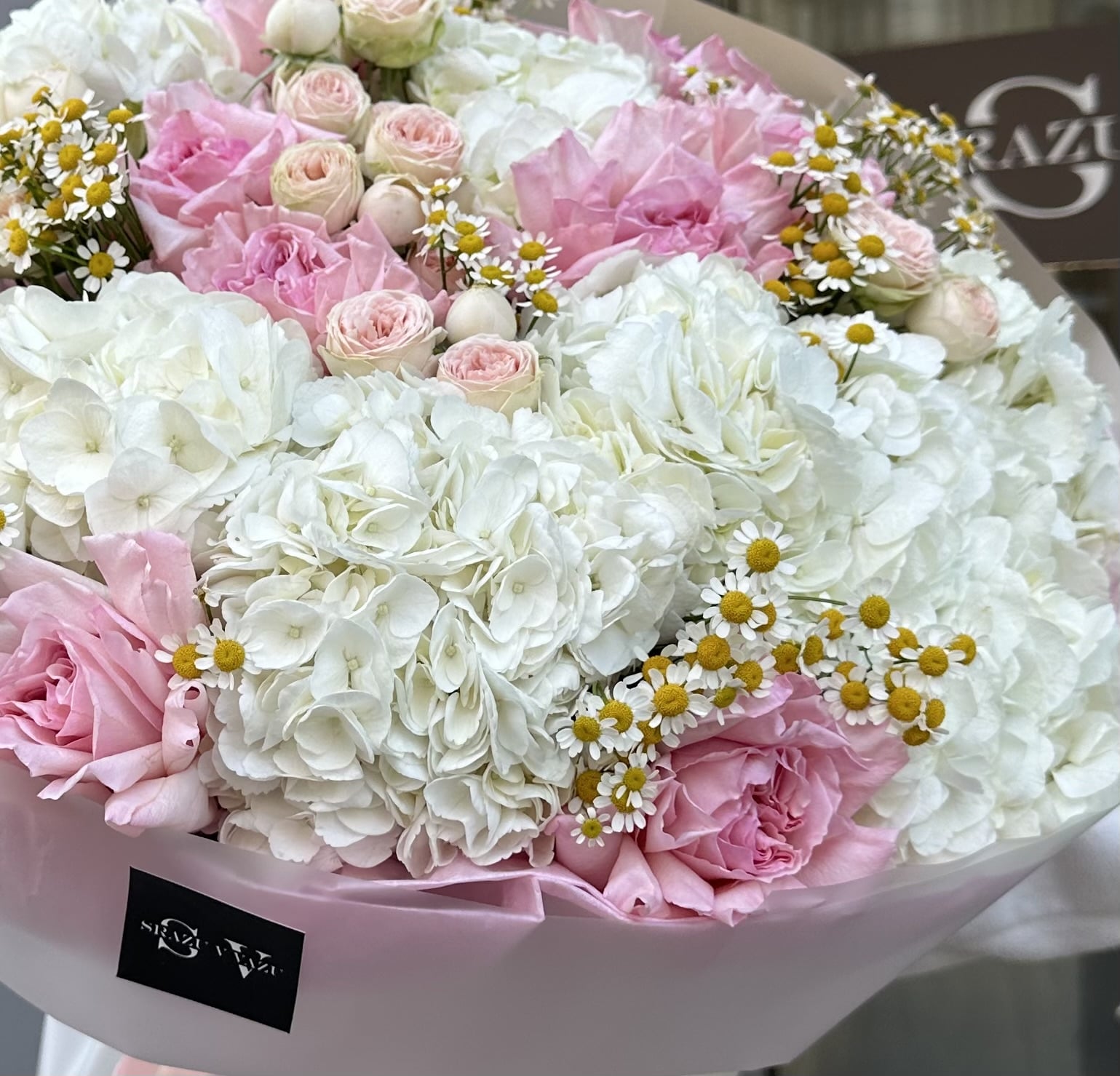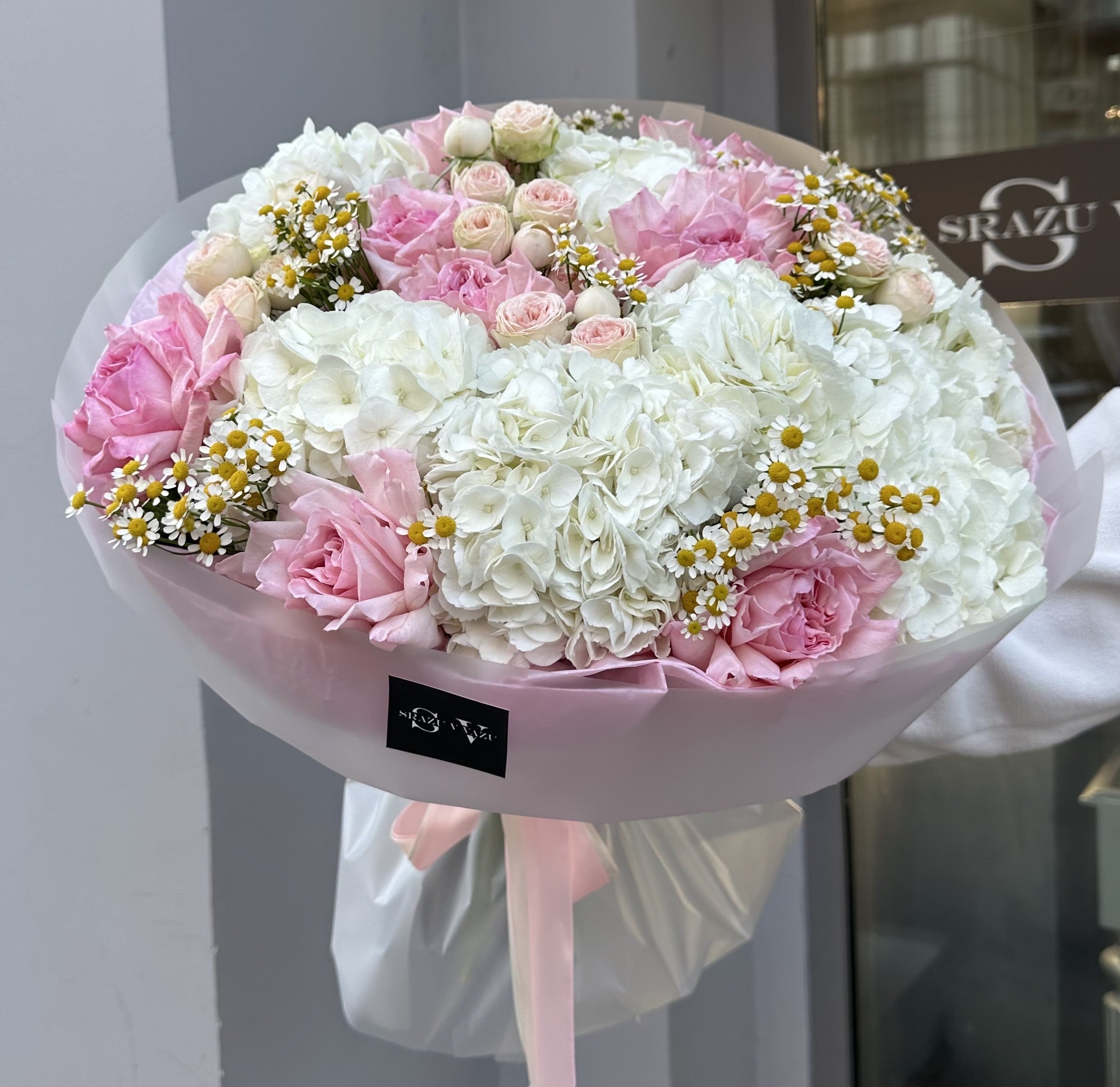 Заказать Авторский букет с гортензией, ромашками и розами с доставкой по Самаре