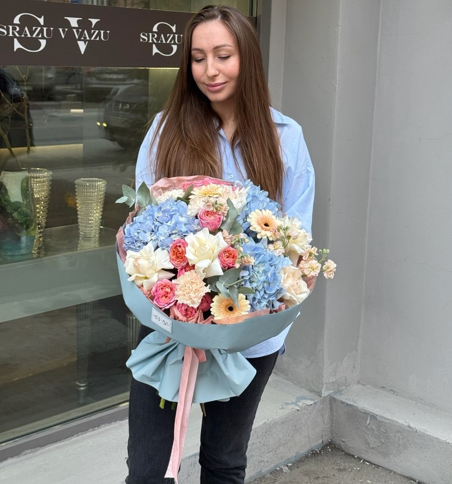 Заказать Авторский букет с гортензией, джульеттой и гермини с доставкой по Самаре
