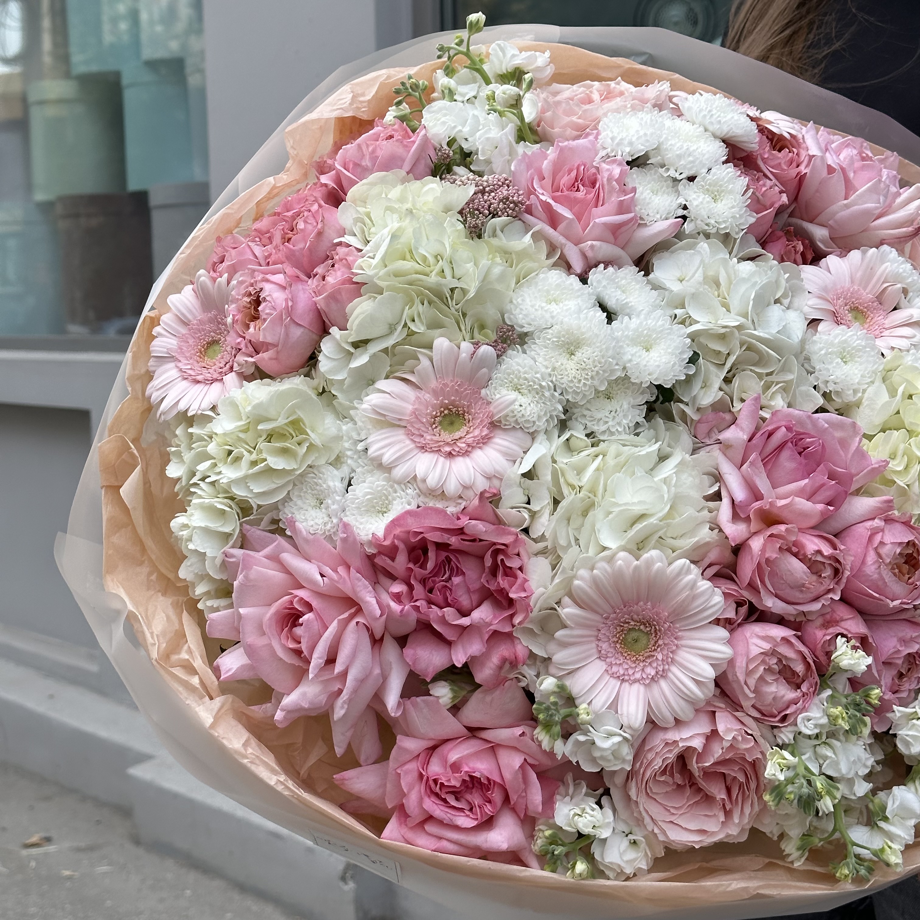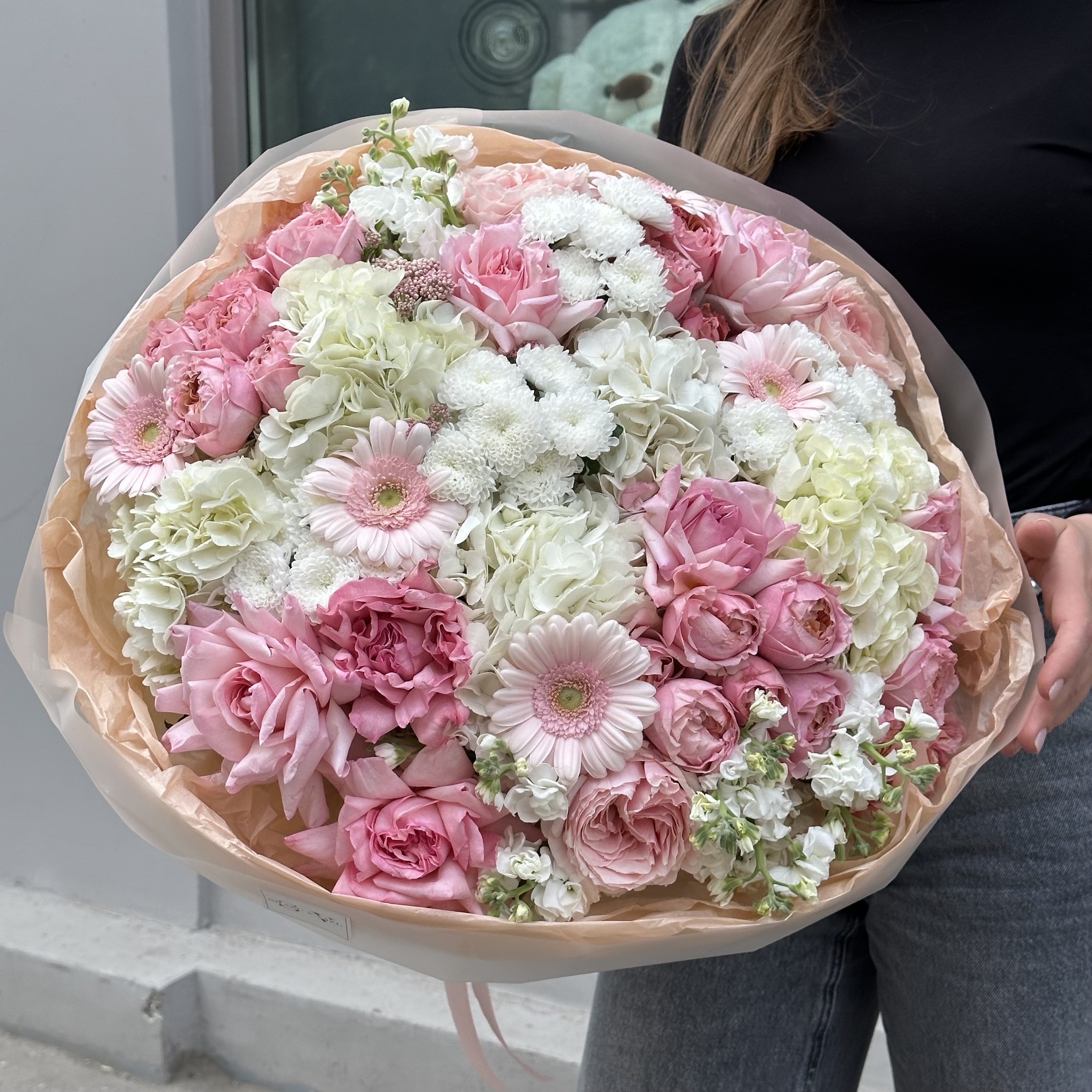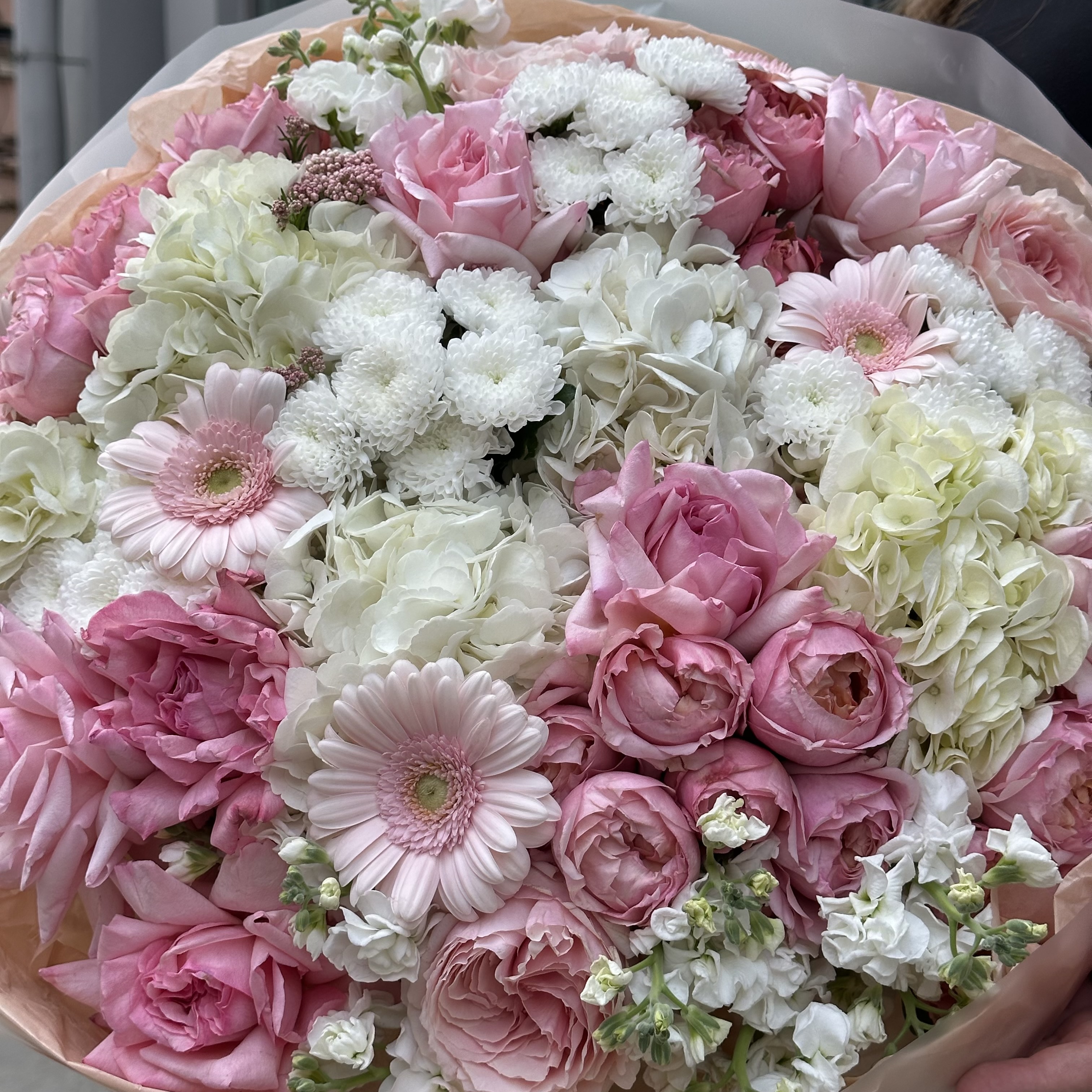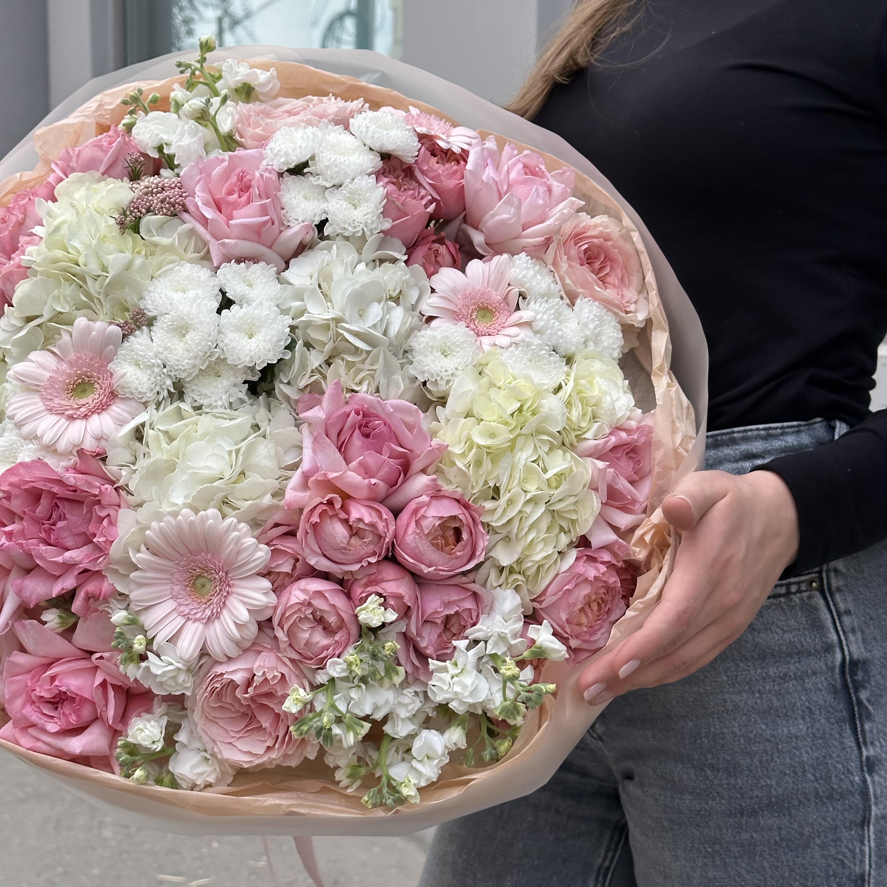 Авторский букет из сантини, гортензий и роз — это гармоничное сочетание нежных и насыщенных оттенков. Элегантность сантини в сочетании с объемными гортензиями и романтичными розами создает утонченную композицию, которая подчеркнет особенность любого повода и порадует своей изысканностью