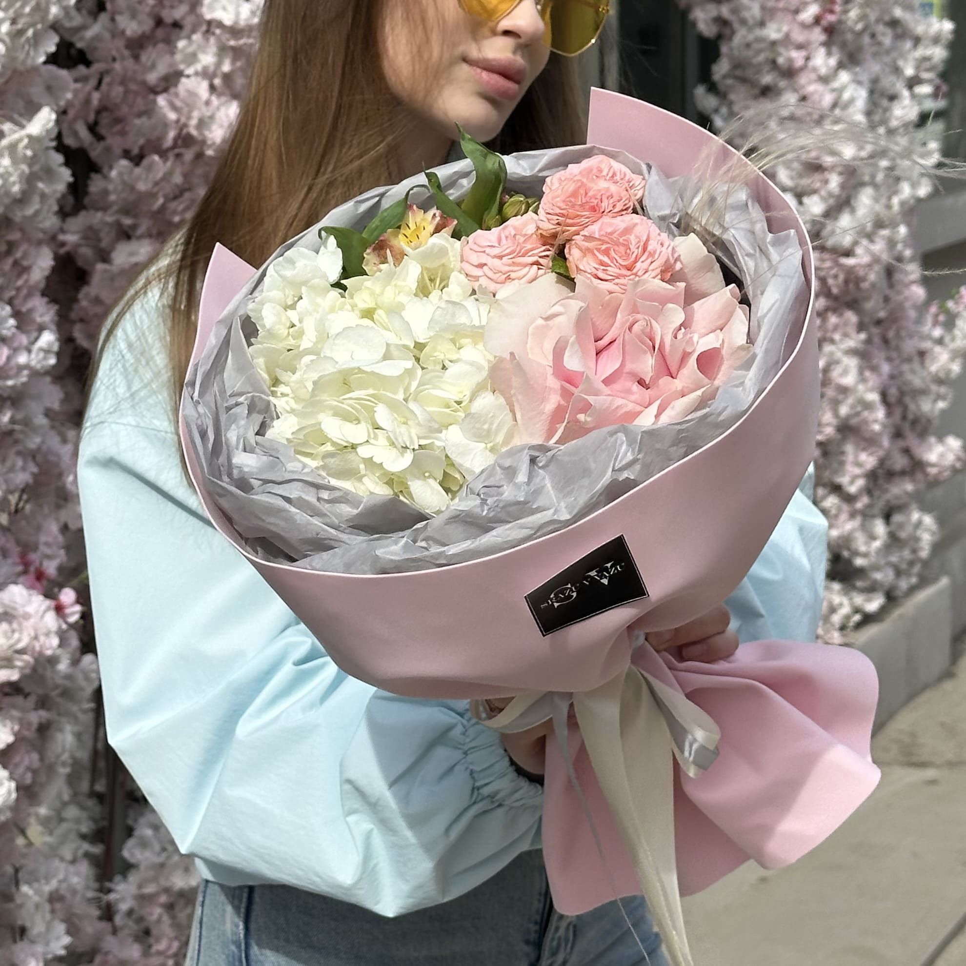 Заказать Авторский букет с альстромерией, розой, гортензией с доставкой по Самаре