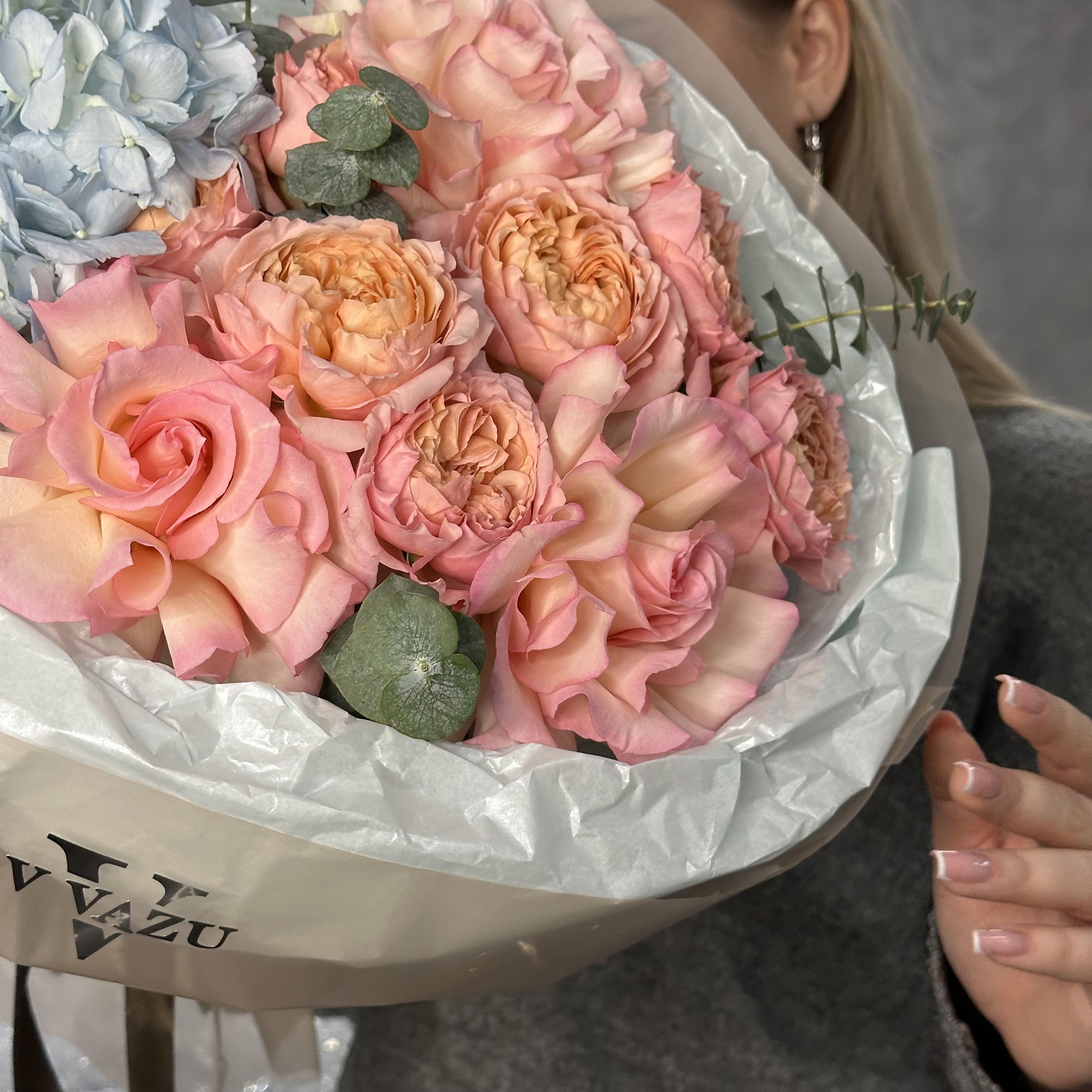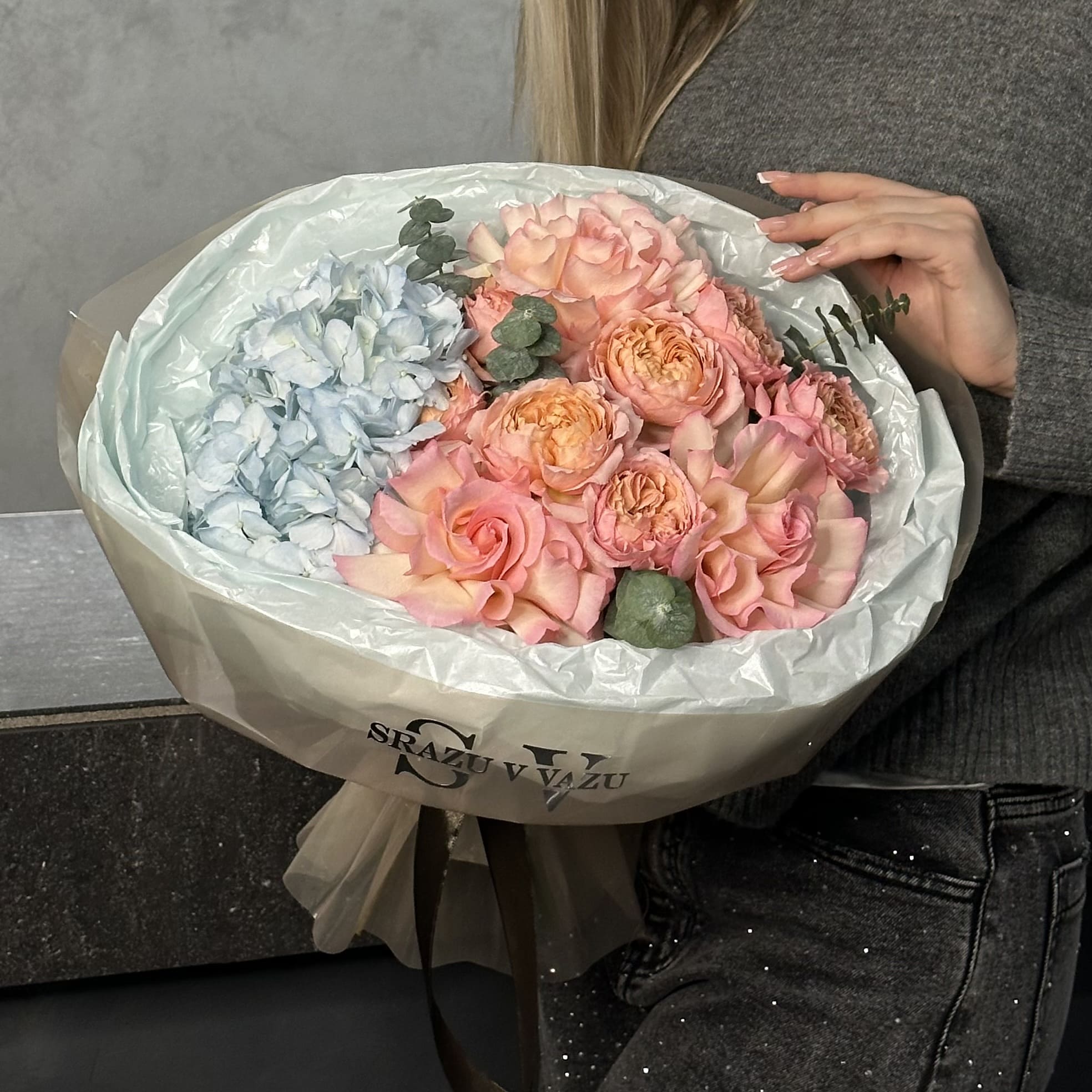 Заказать Авторский букет с гортензией, джульеттой и эвкалиптом с доставкой по Самаре