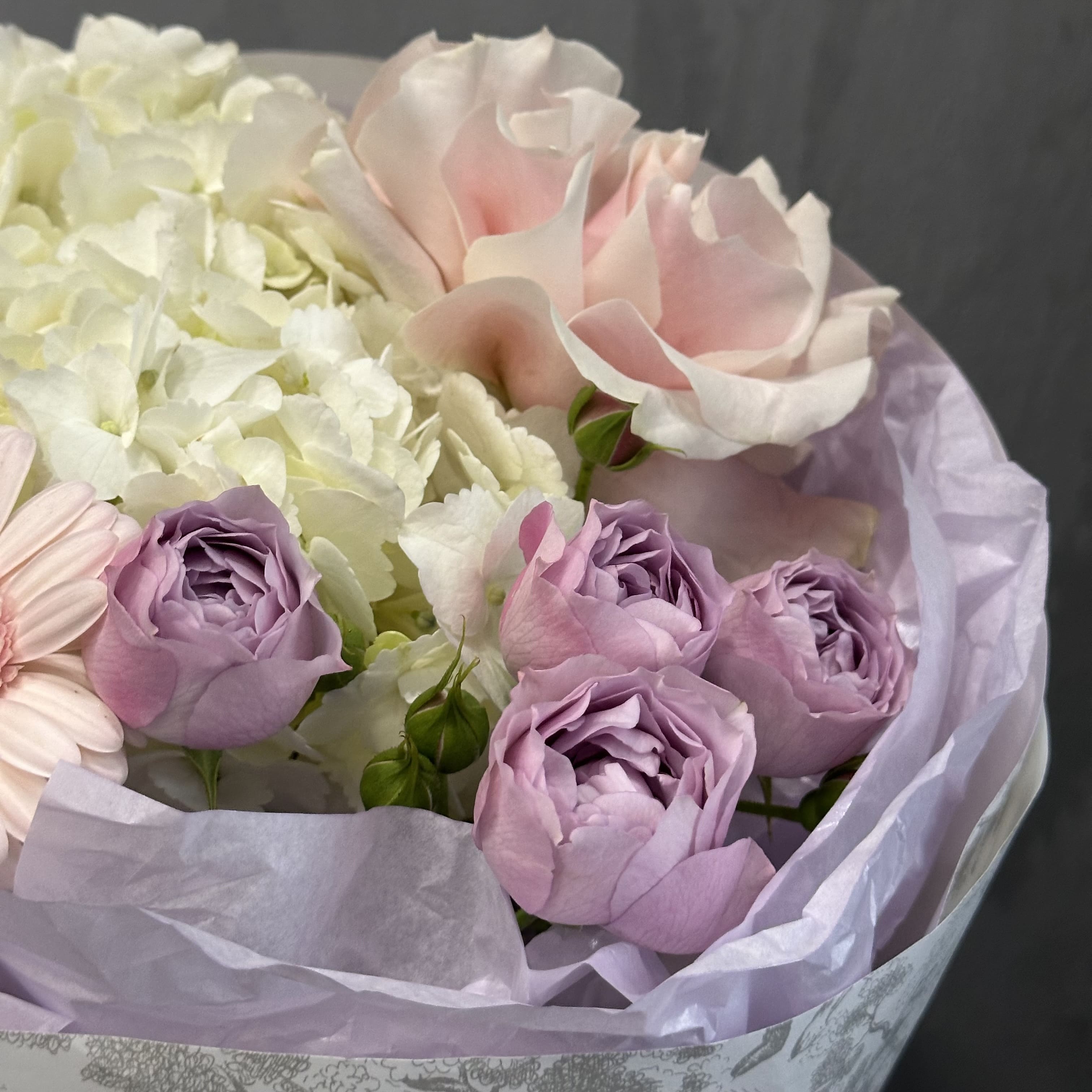 Авторский букет-комплимент- настоящая симфония нежности и элегантности. В его составе сочетаются белая гортензия, розовая гермини, классические французские розы, ароматная маттиола и утончённые кустовые розы. Каждая деталь гармонично дополняет другую, создавая образ, полных тепла и признания. Идеальнее всего — выразить искренние комплименты и поднять настроение близким человеком.