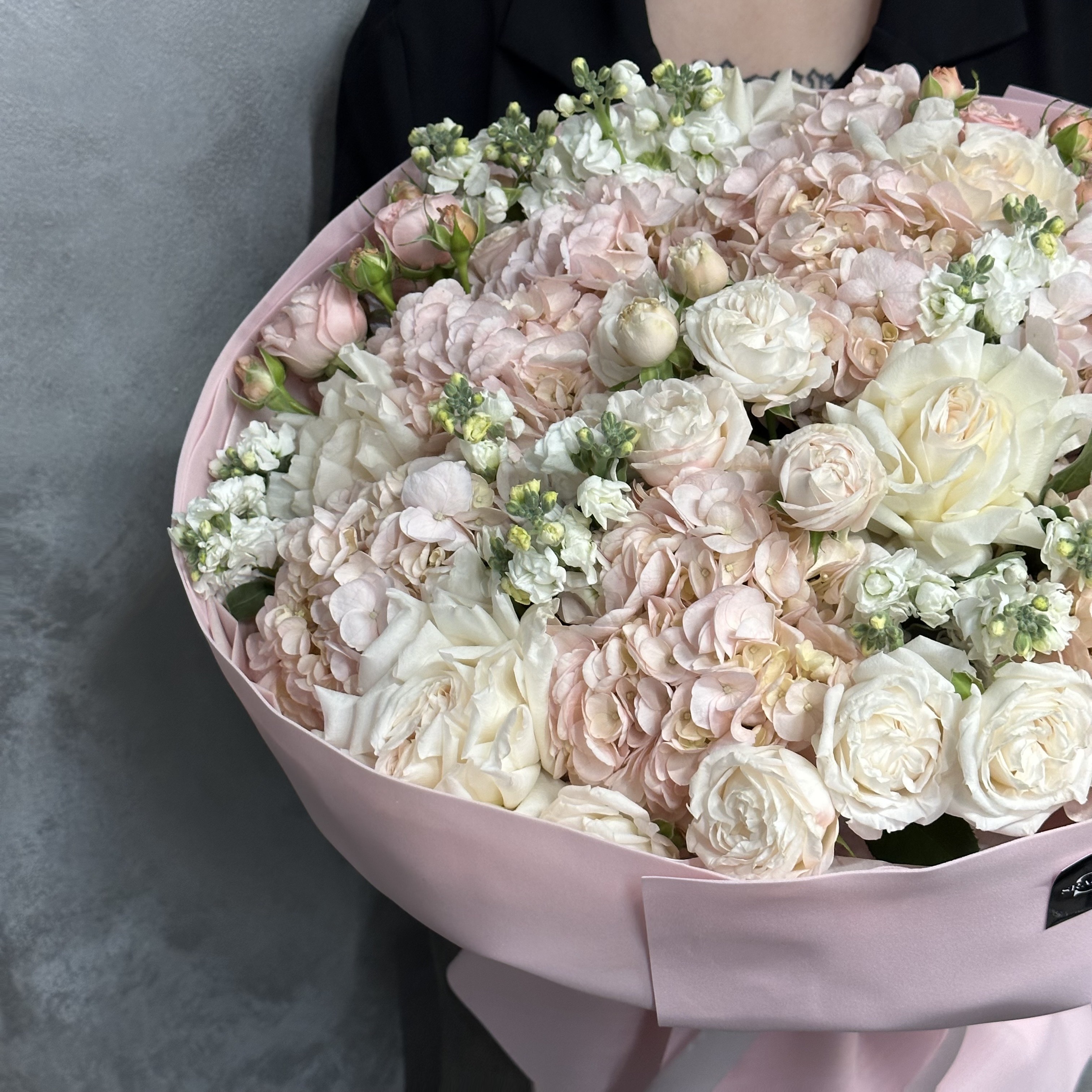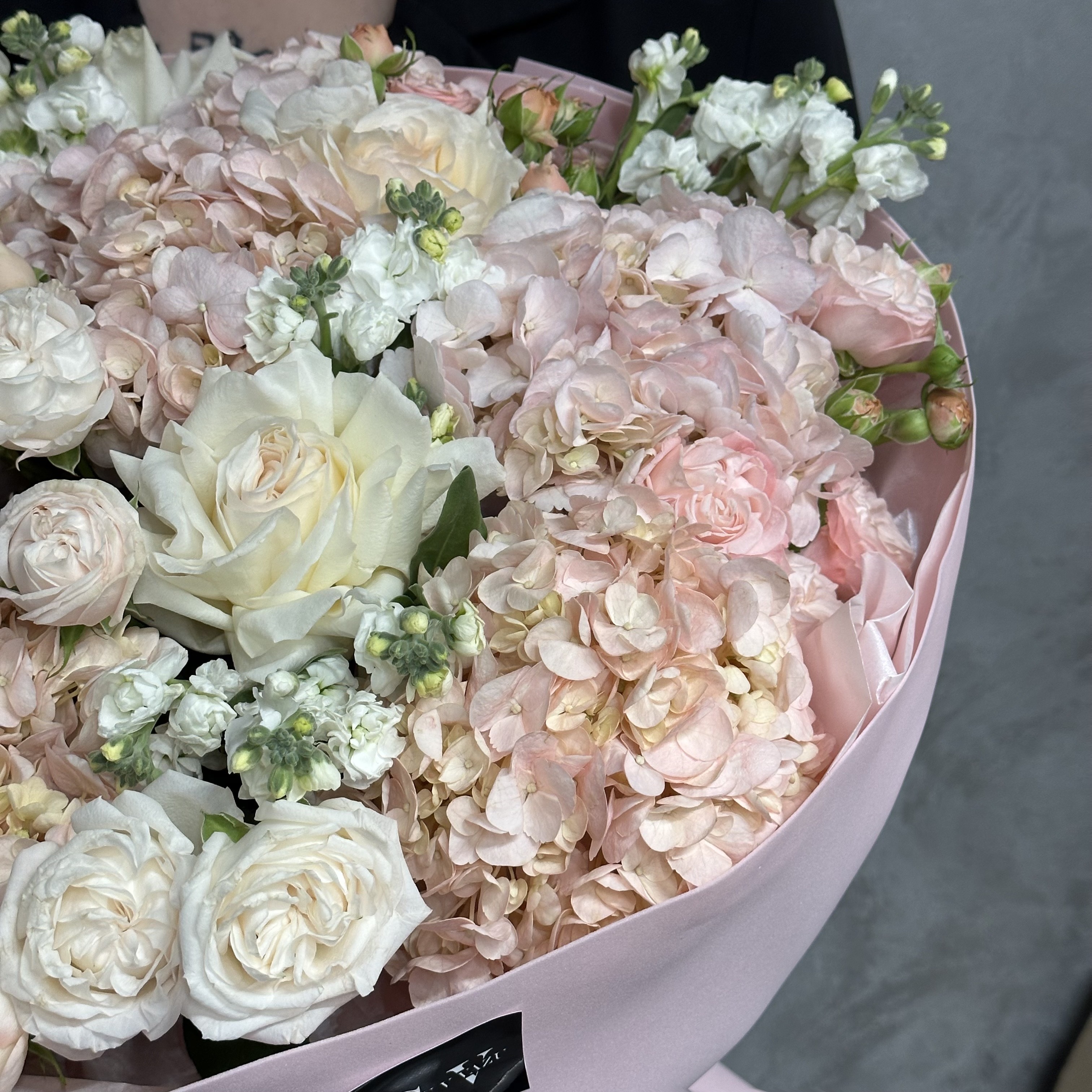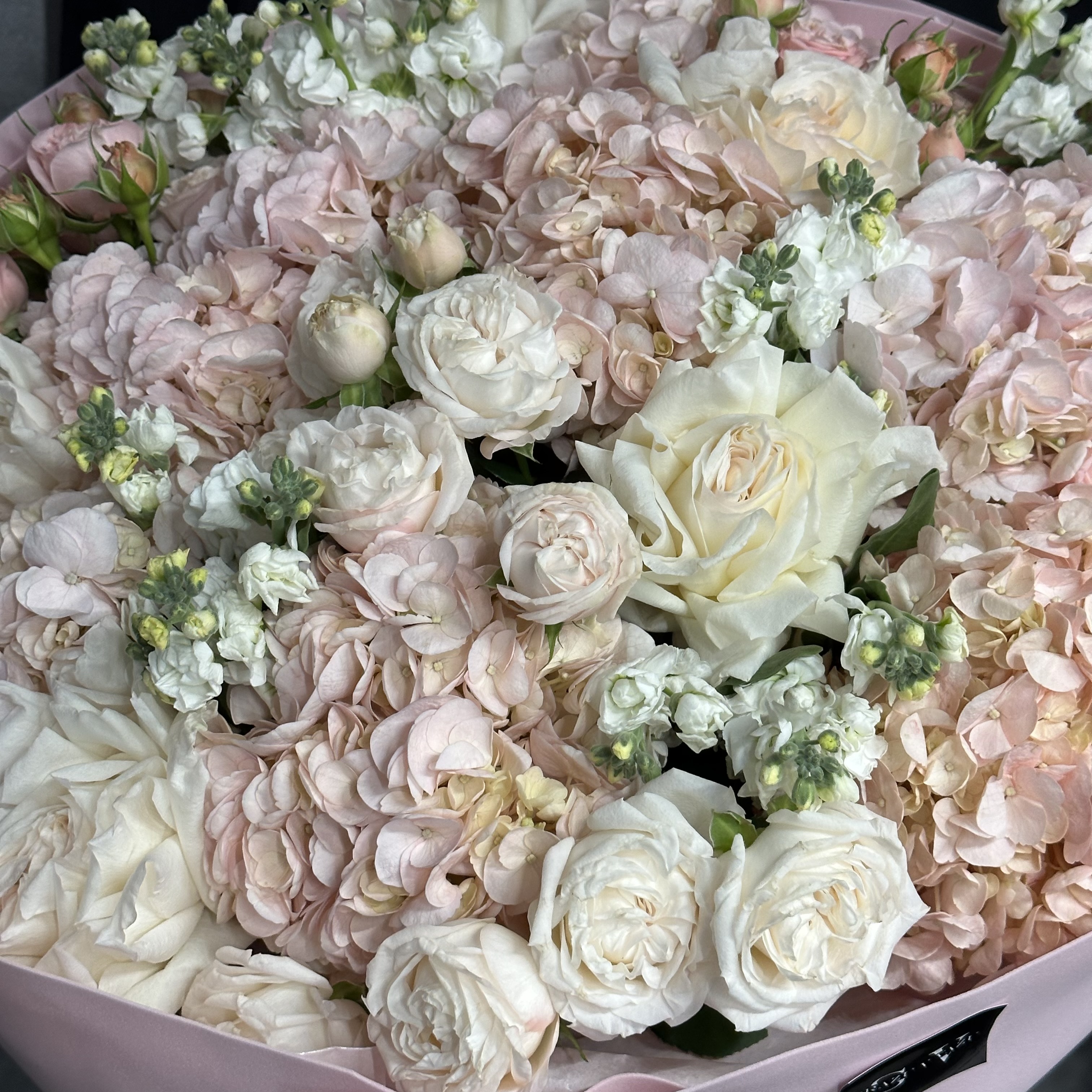 Заказать Авторский букет с маттиолой, гортензией и розами с доставкой по Самаре