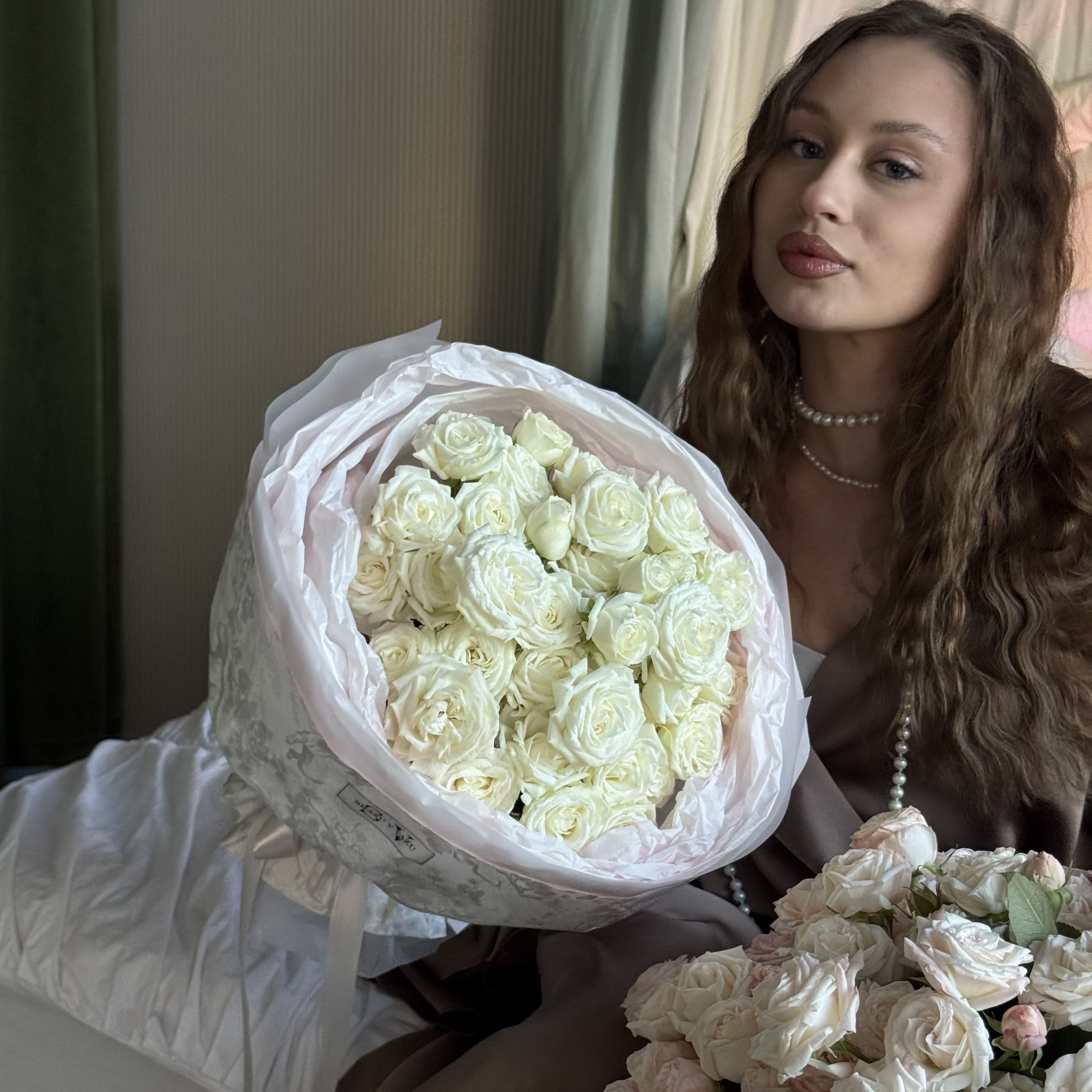 Все букеты собираются подобными, с сохранением стилистики и цветовой гаммы.