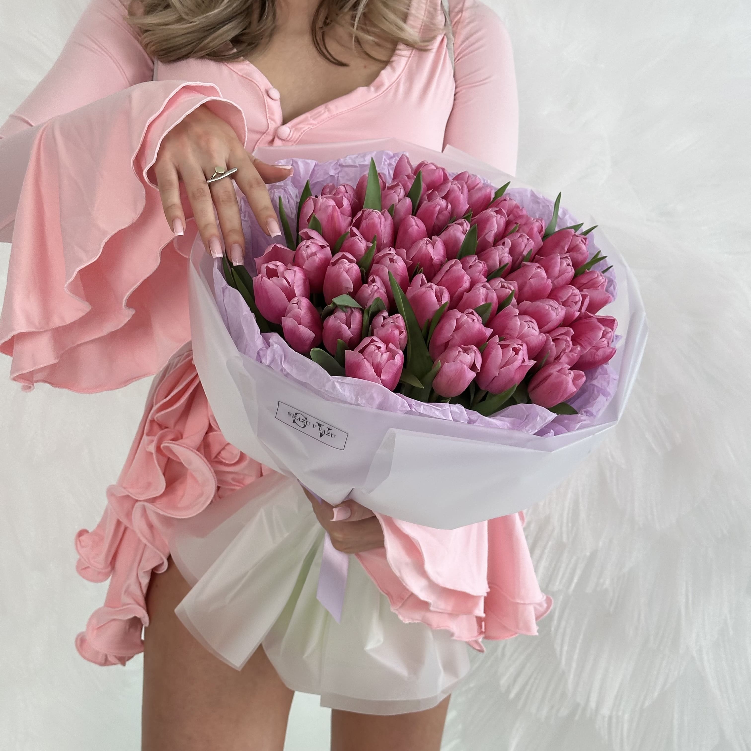 Заказать Букет из розовых тюльпанов 51шт с доставкой по Самаре