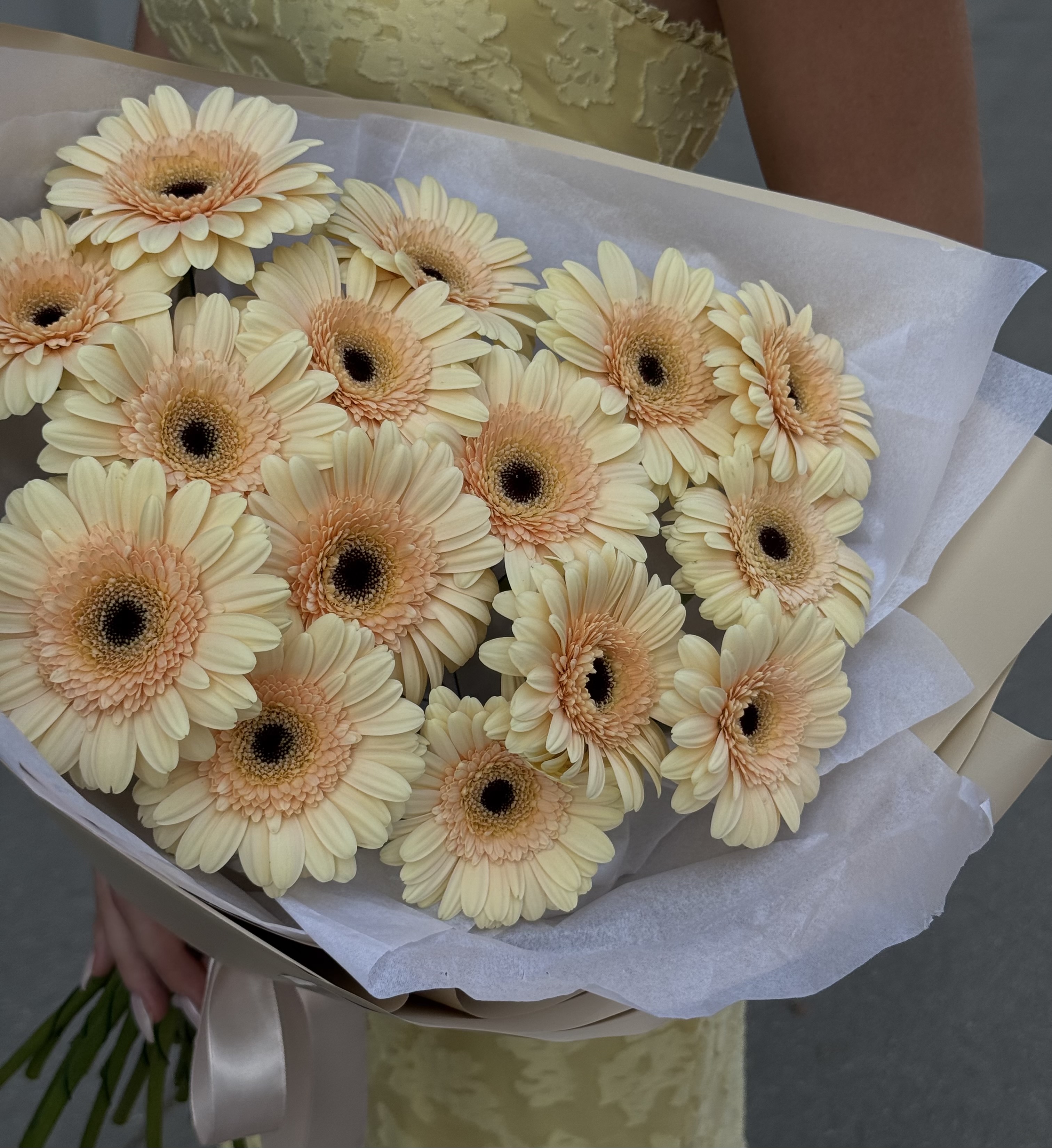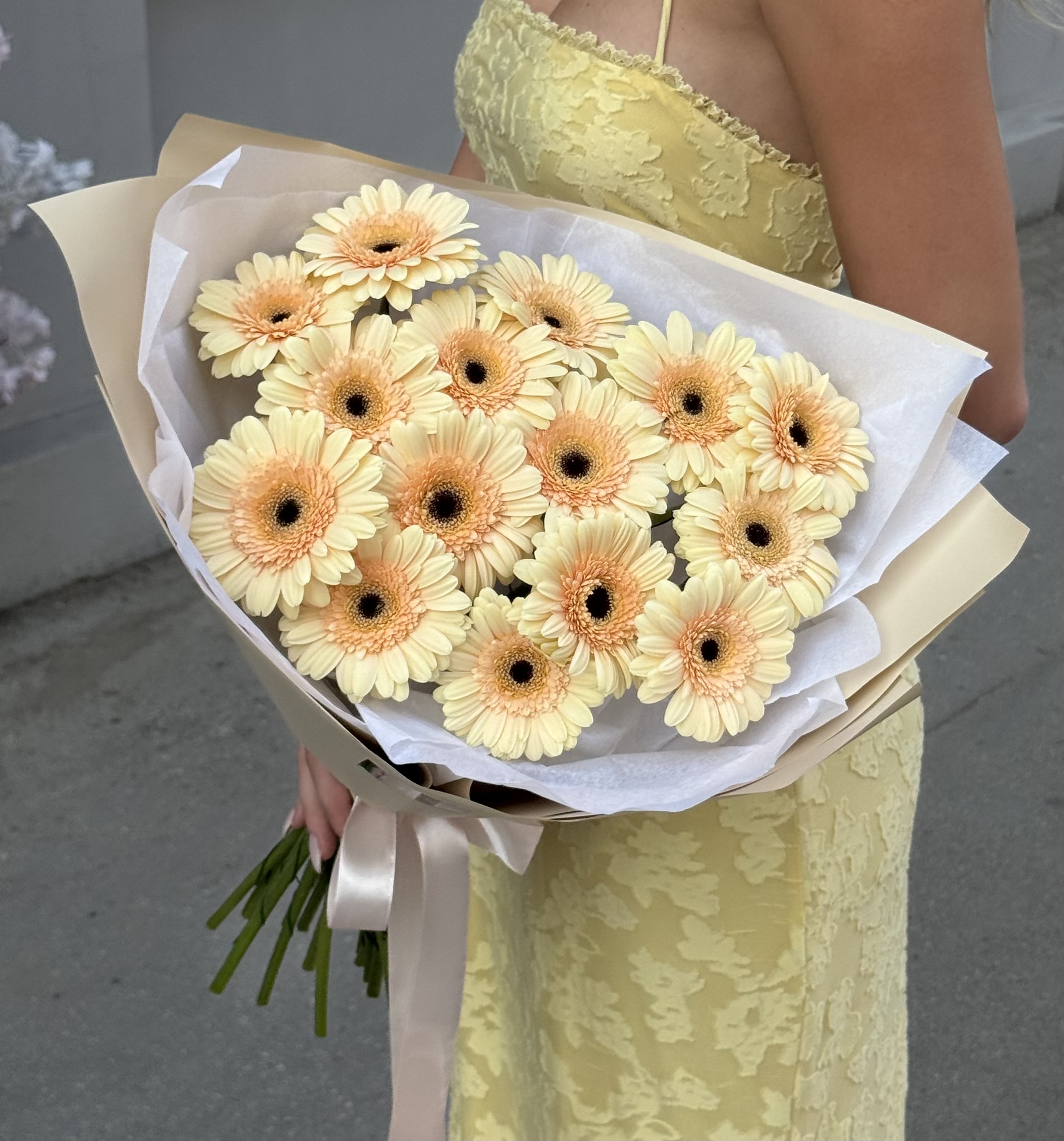 Букет из ярких солнечных гермини, которые поднимут настроение даже в самую пасмурную погоду