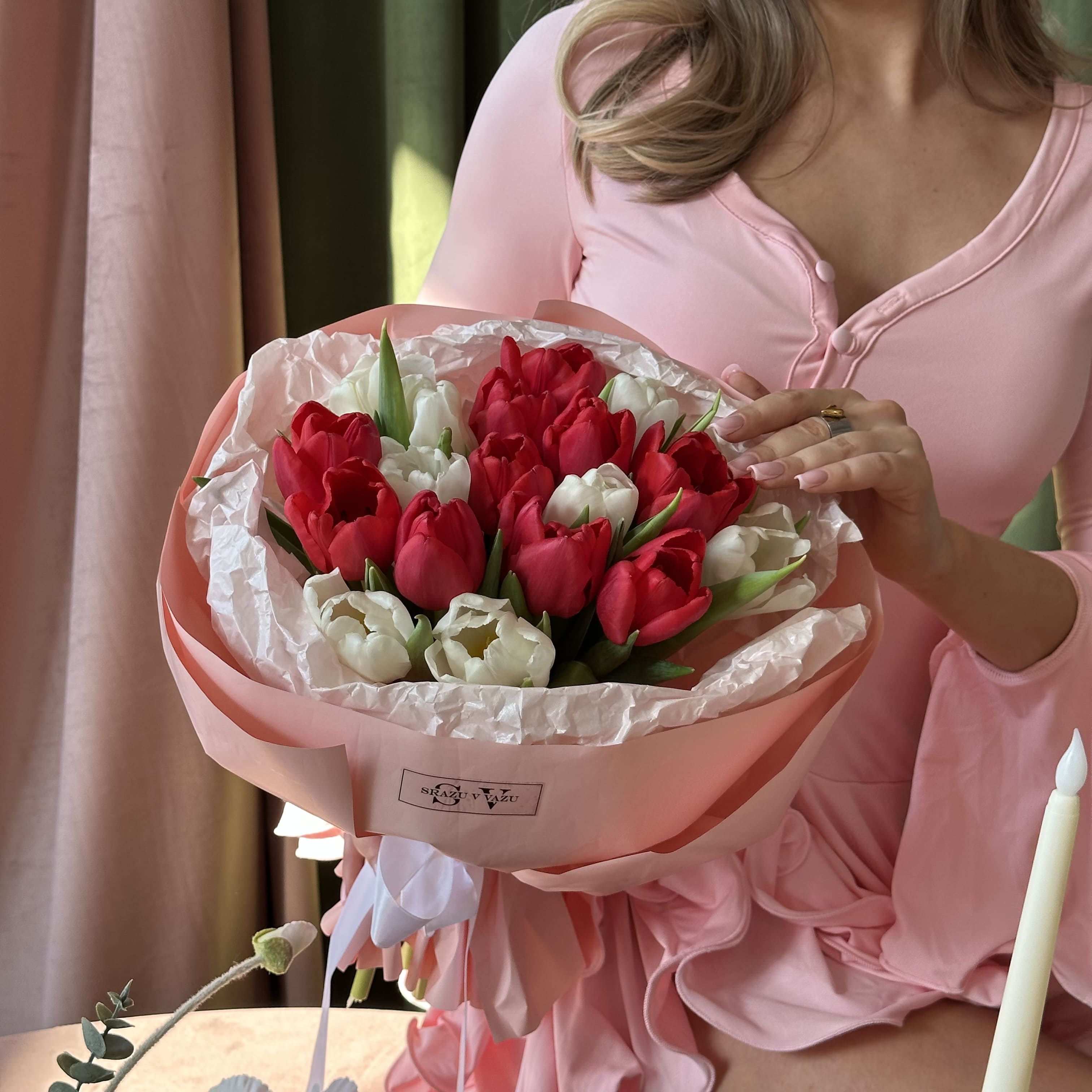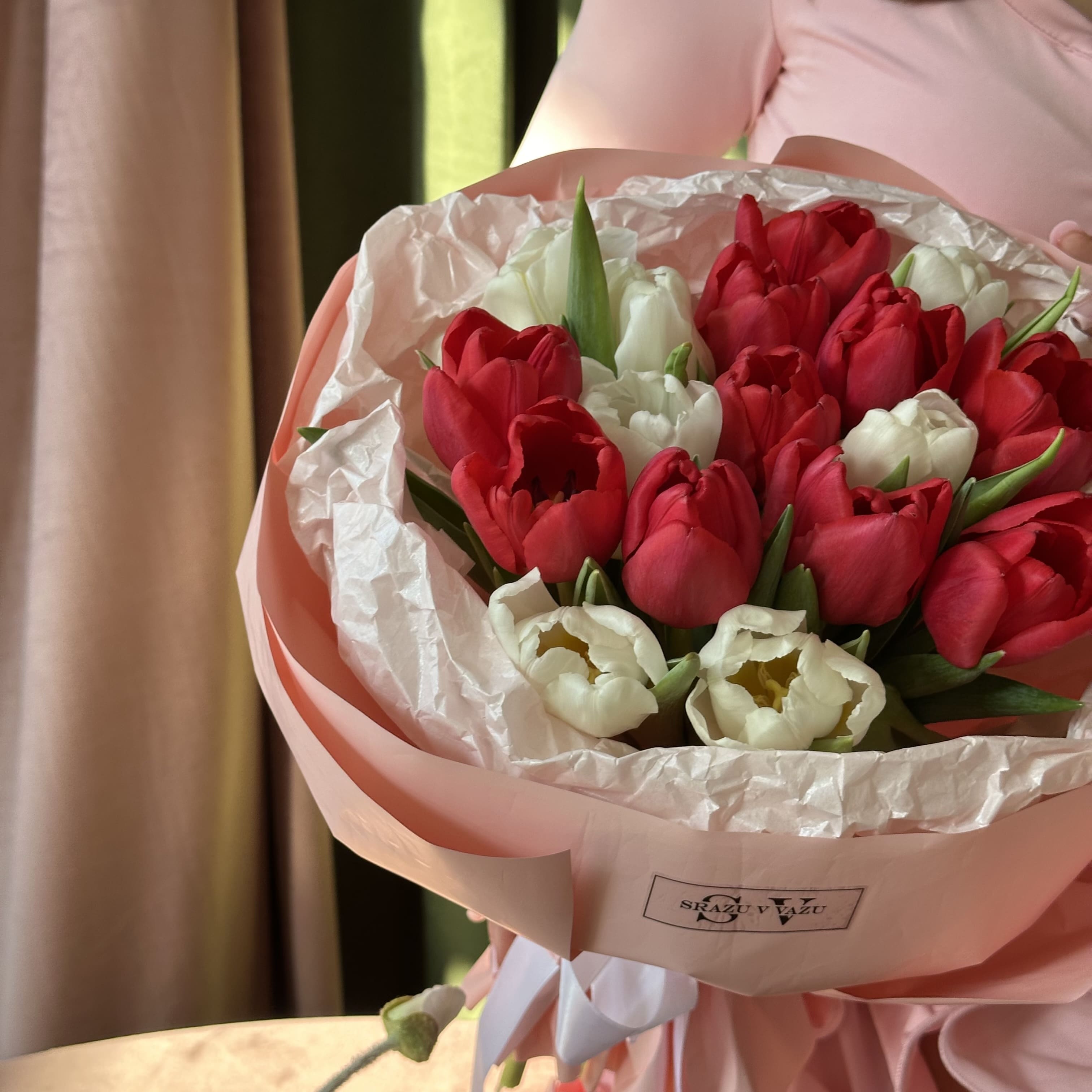 Заказать Букет микс из красных и белых тюльпанов 19шт с доставкой по Самаре
