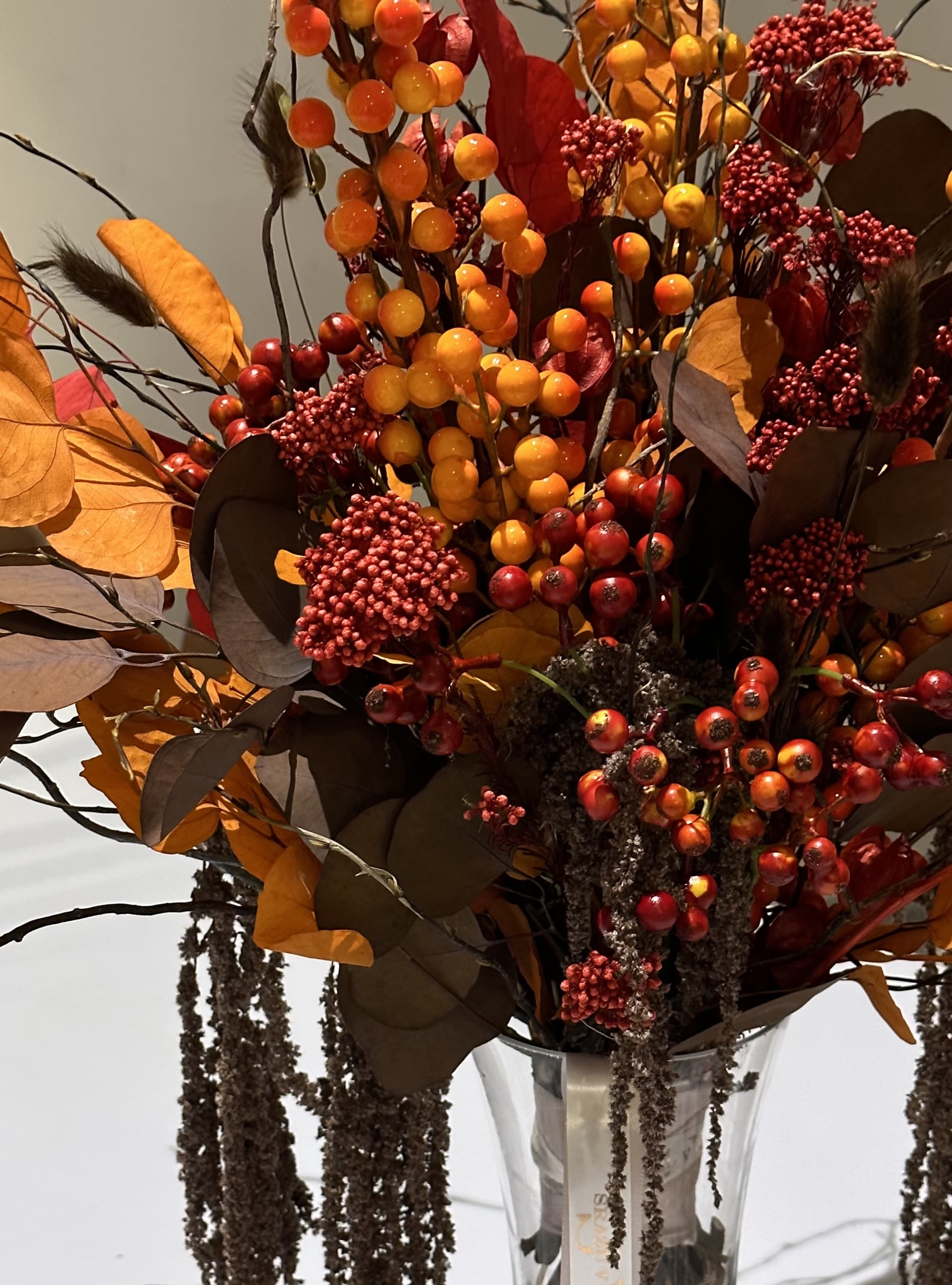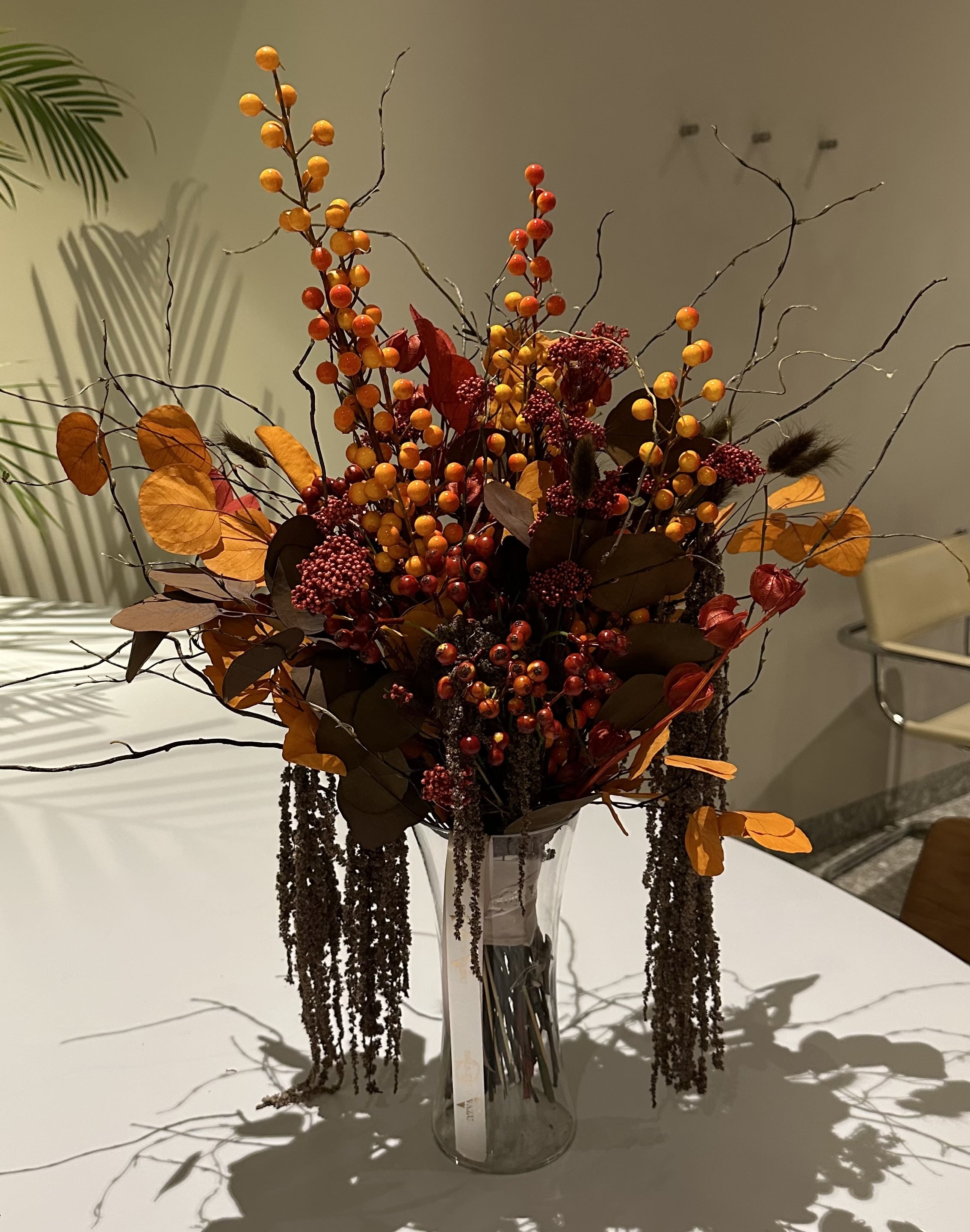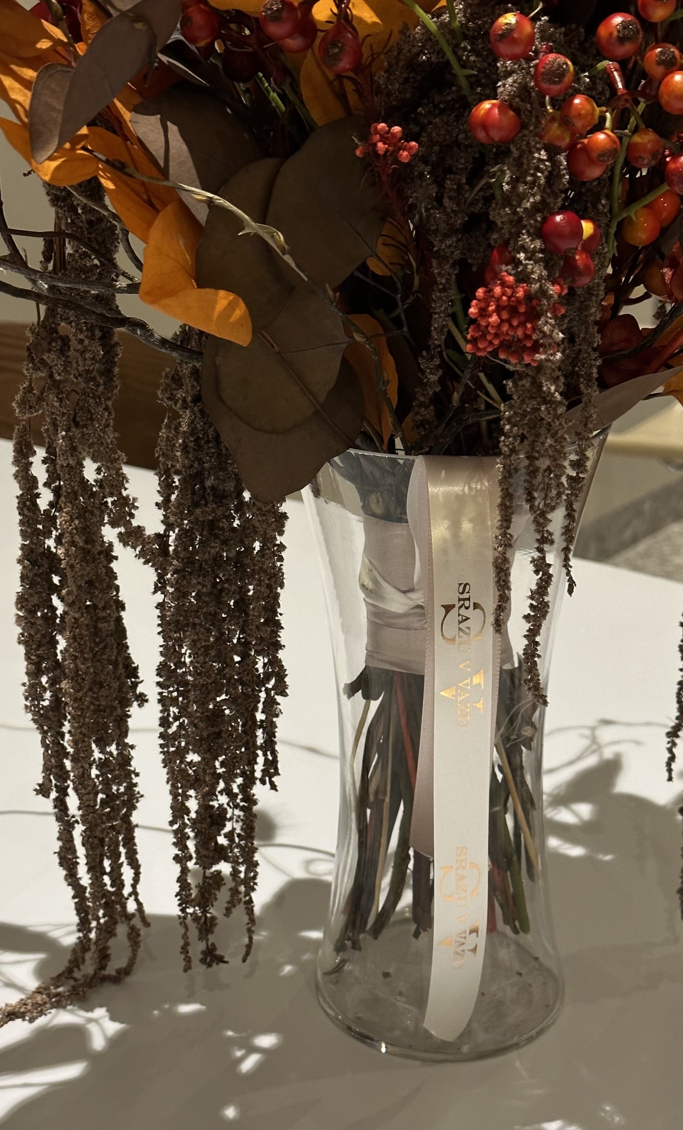 Яркий сочный букет из сухоцветов в осенней стилистике. Преобладающие тона - изысканно коричневый, бордовый с нотками оранжевого. Идеальное сочетание этой осени, передающее настроение сезона