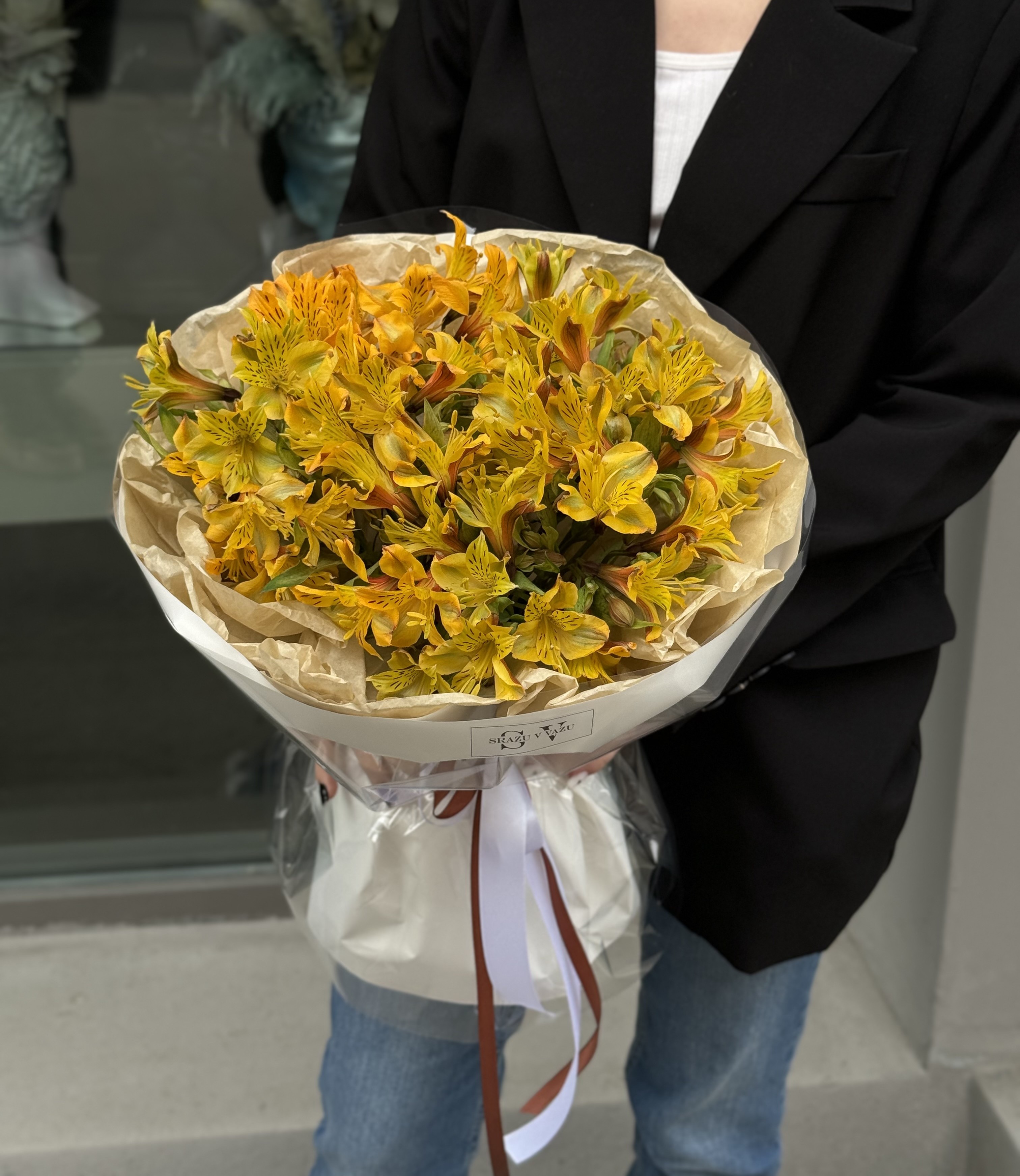Моно-букет из альстромерий — отличный подарок для любого случая: от дня рождения до романтического свидания. Альстромерии известны своей стойкостью и яркостью, поэтому они отлично подойдут не только в качестве подарка, но и для украшения интерьера.