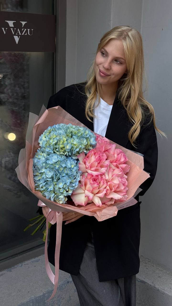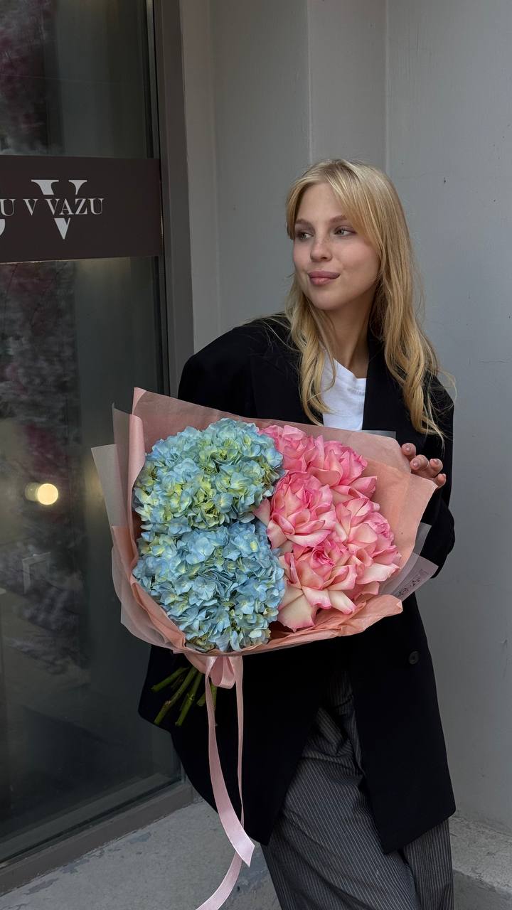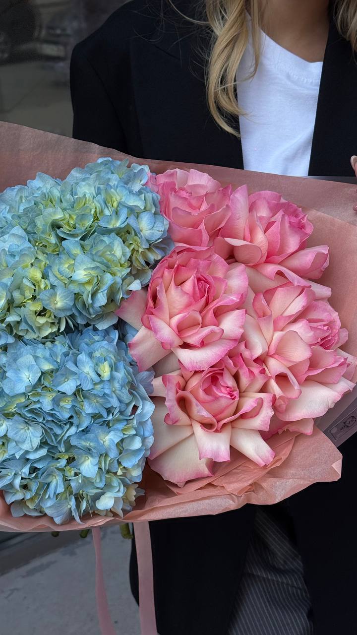 Заказать Дуо букет из гортензии и французской розы «Esperance» с доставкой по Самаре