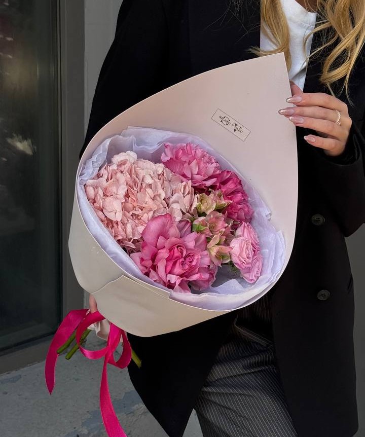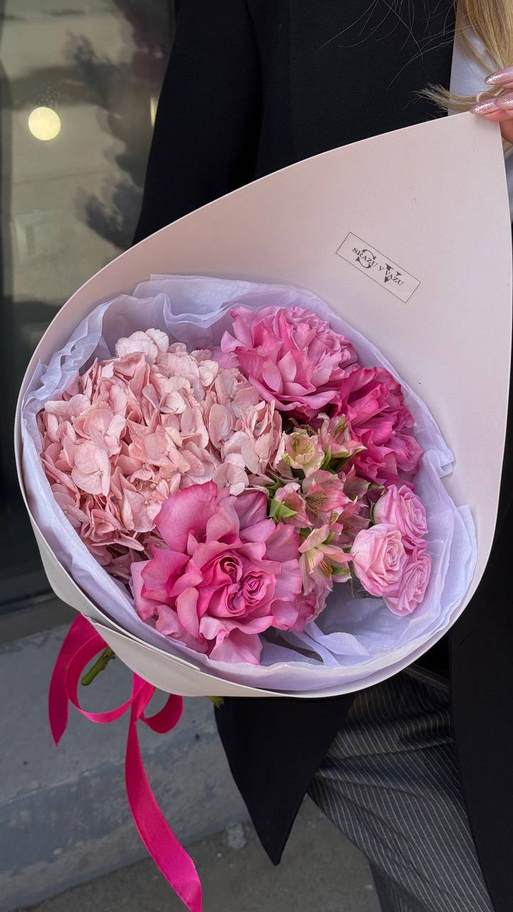 Заказать Авторский букет с альстромерией, розами и гортензией с доставкой по Самаре