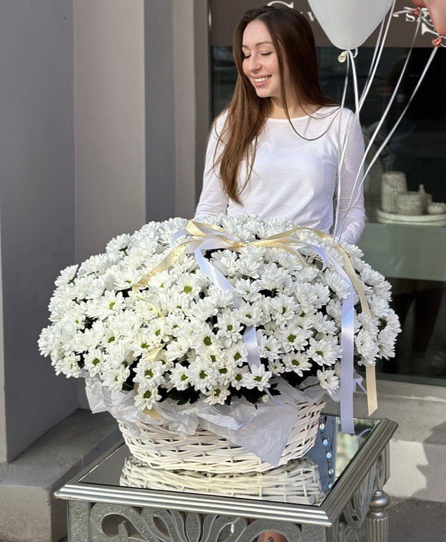 Моно композиция в плетеной корзине из кустовых хризантем прекрасно выражает искренние и тёплые чувства, создавая атмосферу радости и гармонии. Хризантемы отличаются своей стойкостью, подойдут как для торжественных событий, так и для уютного подарка в повседневной жизни.