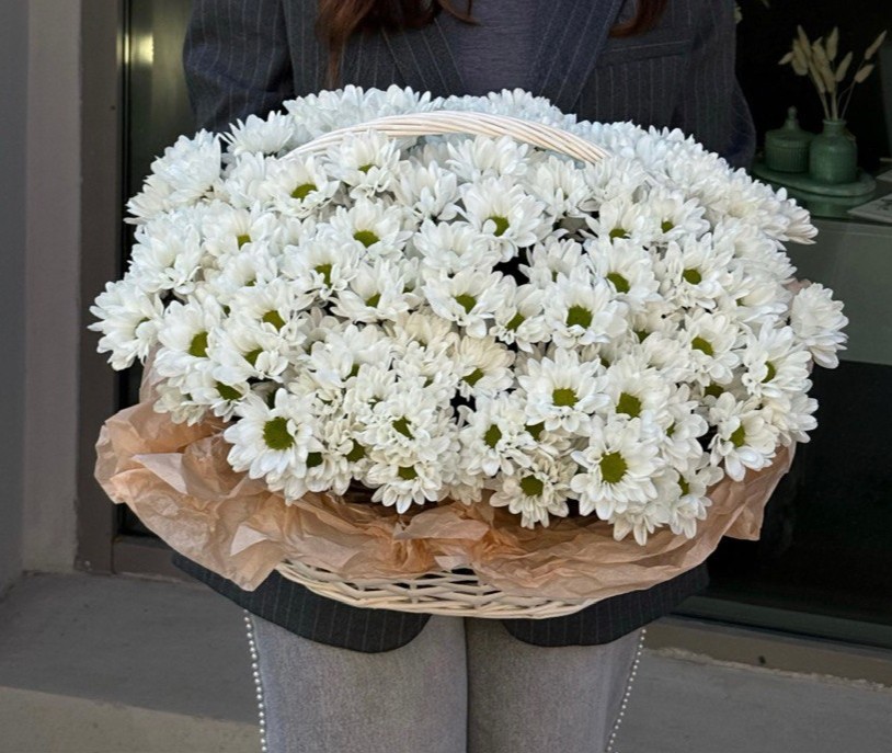 Моно композиция в плетеной корзине из кустовых хризантем прекрасно выражает искренние и тёплые чувства, создавая атмосферу радости и гармонии. Хризантемы отличаются своей стойкостью, подойдут как для торжественных событий, так и для уютного подарка в повседневной жизни.