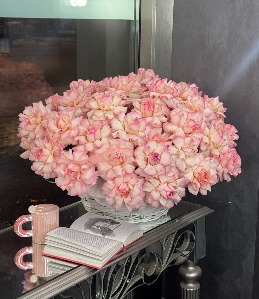 Большая композиция из нежных французских роз в плетеной ивовой корзине – это изысканное воплощение элегантности и романтики. Каждая деталь этой композиции призвана передать ваши необъятные и теплые чувства!