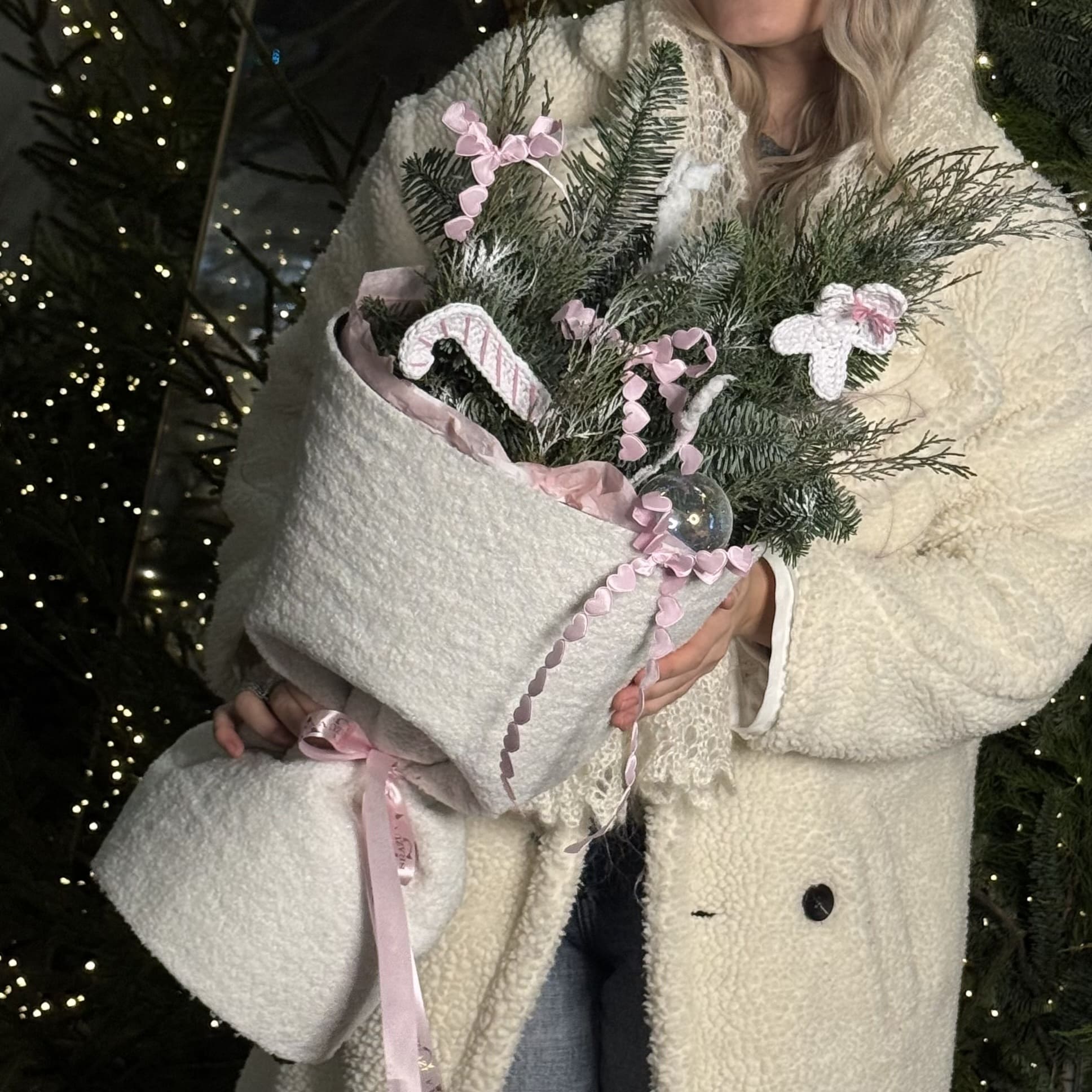 Новогодний букет в теплой гамме, созданный из ветвей благородного нобилиса, мягких игрушек и стильного декора. Легкий аромат хвои, яркие акценты и уютная упаковка создают особую атмосферу праздника. Идеален для подарка родным и близким или эффектного украшения интерьера.