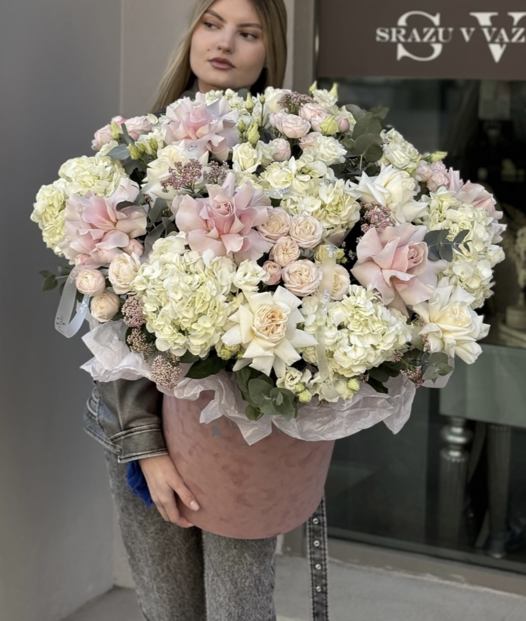 Заказать WOW авторская композиция из гортензий и роз с доставкой по Самаре