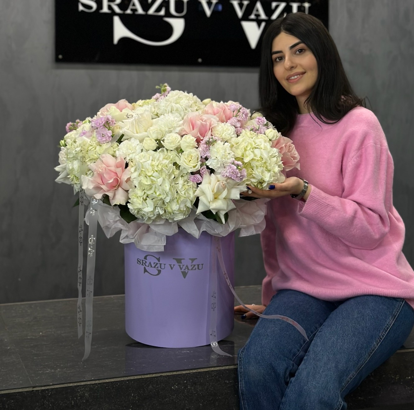 Заказать Цветочная композиция с гортензиями, розами и маттиолой с доставкой по Самаре