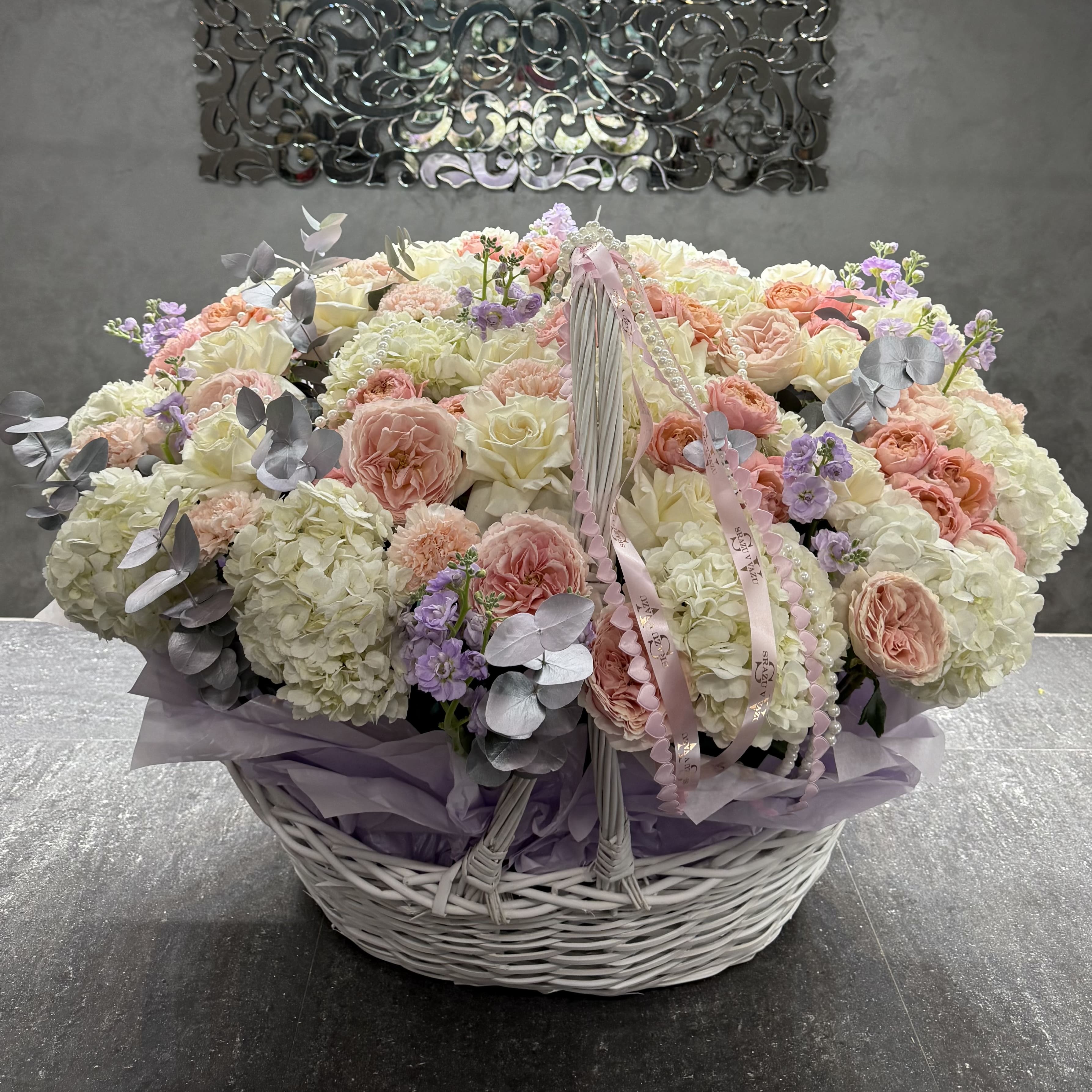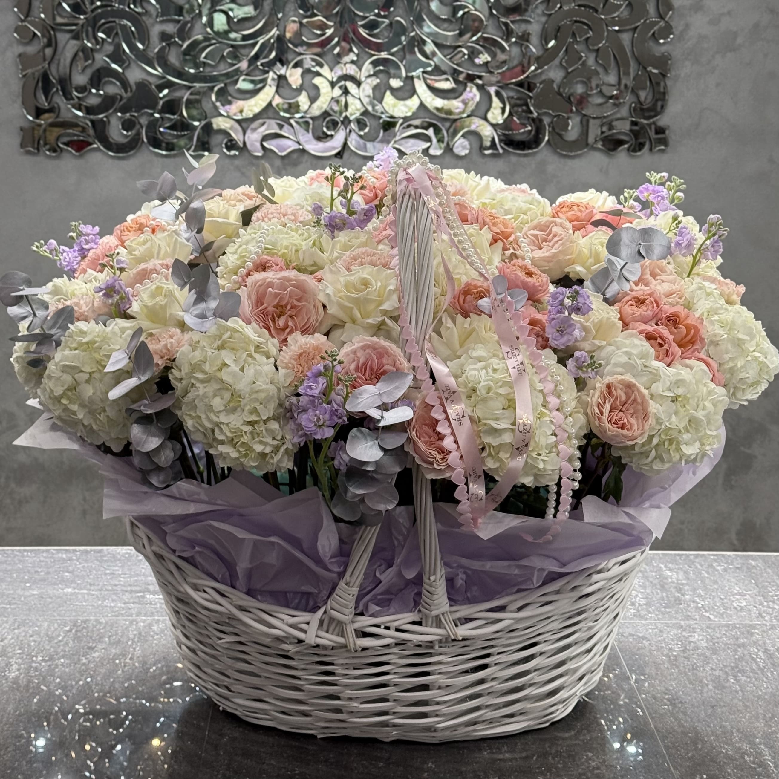 Заказать WOW корзина из гортензий, роз и маттиолы с доставкой по Самаре